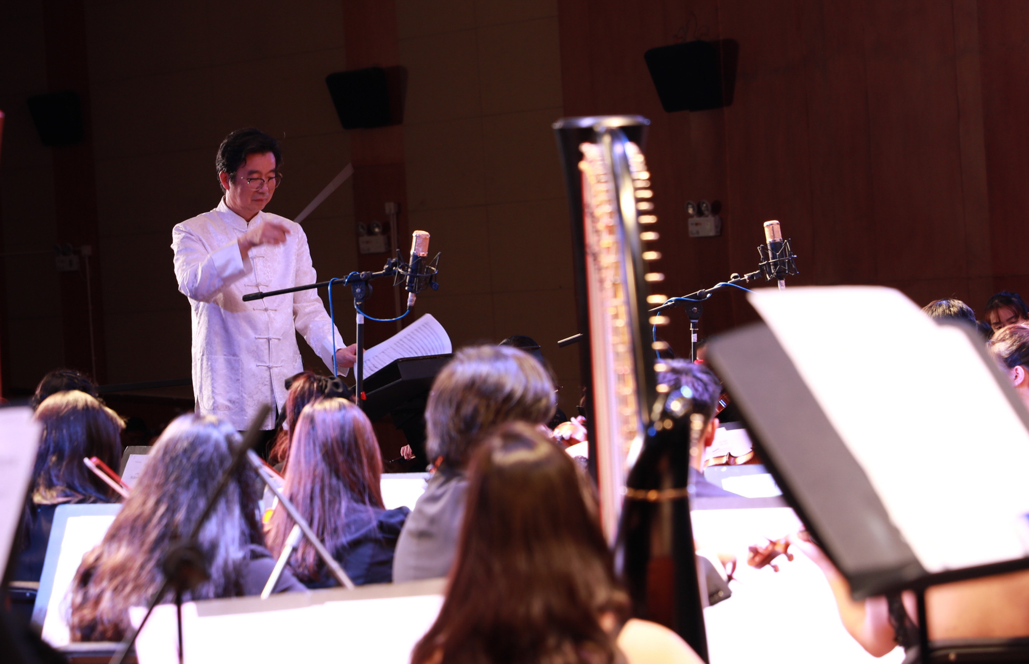 此次音乐会由完美(中国)官方交响乐团演奏,音乐学院华韵合唱团演唱,由音乐学院教授常林担任指挥。