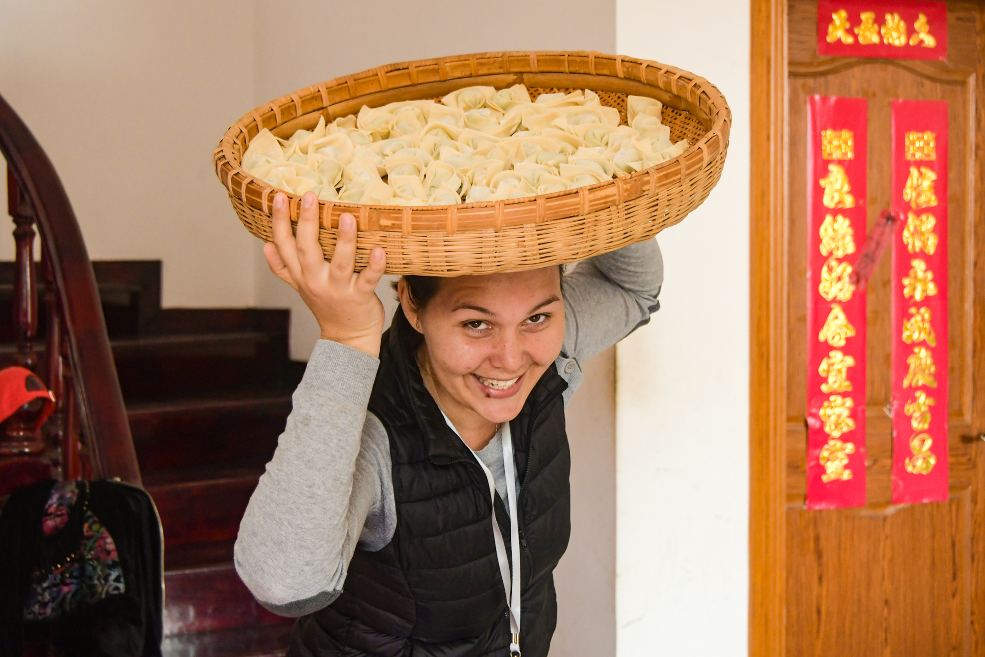 为了能够更加深入感受崇明人民新农村生活的日常,第二日,同学们拜访了崇明绿华镇的华西试点村。通过学习和了解村史,通过一系列的照片和实物,深切感受改革开放几十年来农村发展和农民生活的巨大变化;同学们分组走进村民家里做客,和村民一起亲手包饺子、挖红薯、生火做饭,体验新农村人民的生活,不仅感受到了崇明人的热情,也第一时间品尝到了有机、绿色的农家食品。