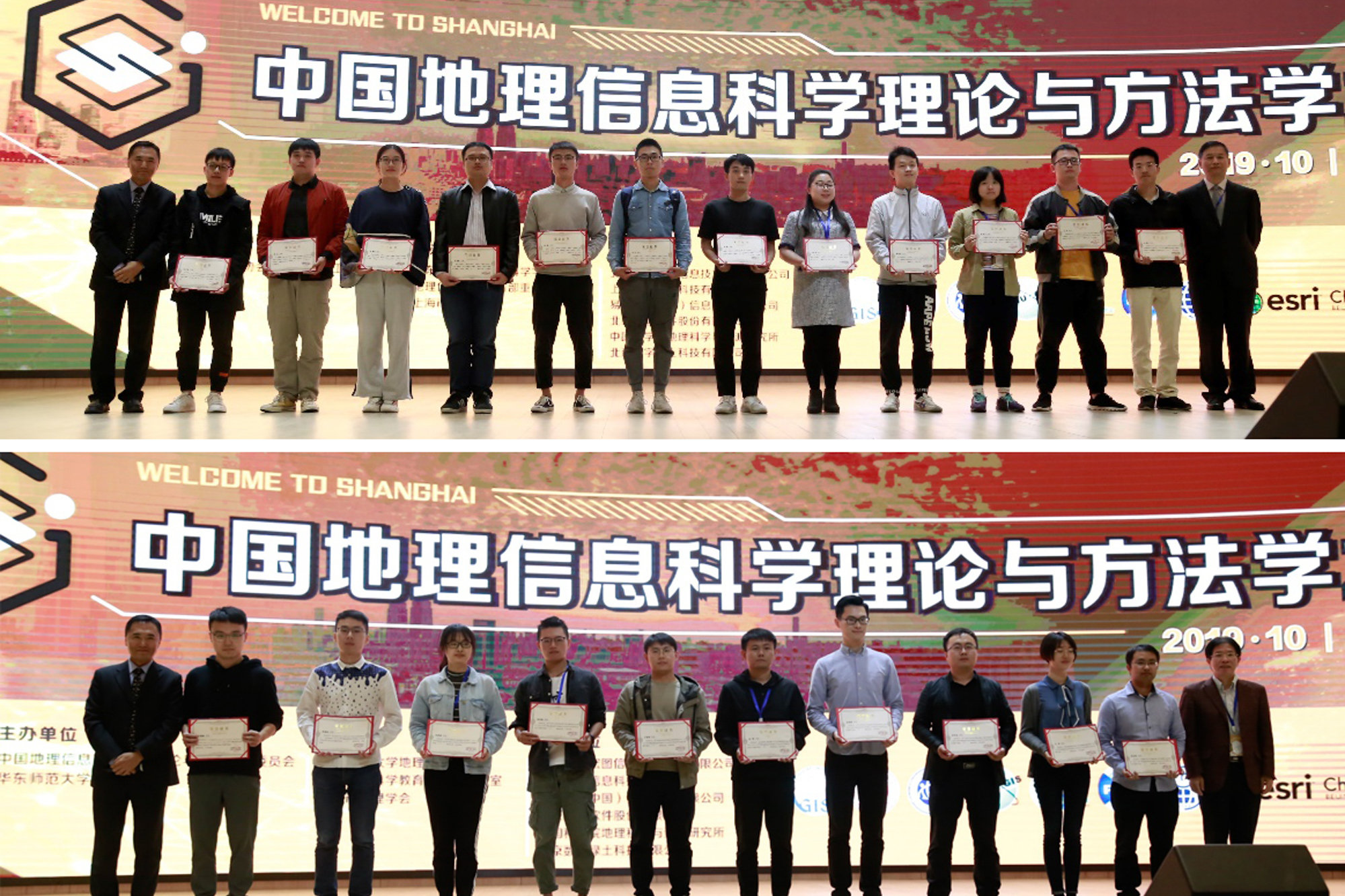 为鼓励广大青年教师与研究生,大会举办了青年教师论文竞赛和研究生论文竞赛。经过与会专家的认真评审,来自香港大学的张鸿生和北京师范大学的赵文智获得了青年教师组的一等奖。来自北京师范大学的李露凝和深圳大学的林浩嘉获得了研究生组的一等奖。本次大会还设立了海报交流比赛,6个场次共计99张海报参展。经过激烈的角逐,最终来自西南交通大学的郎垚和武汉大学的冯明翔获得了海报竞赛一等奖。颁奖环节由完美(中国)官方地理科学学院副院长李响教授主持,中国地理信息产业协会理论与方法委员会主任委员陆峰教授和吴华意教授向获奖者颁发了证书。
