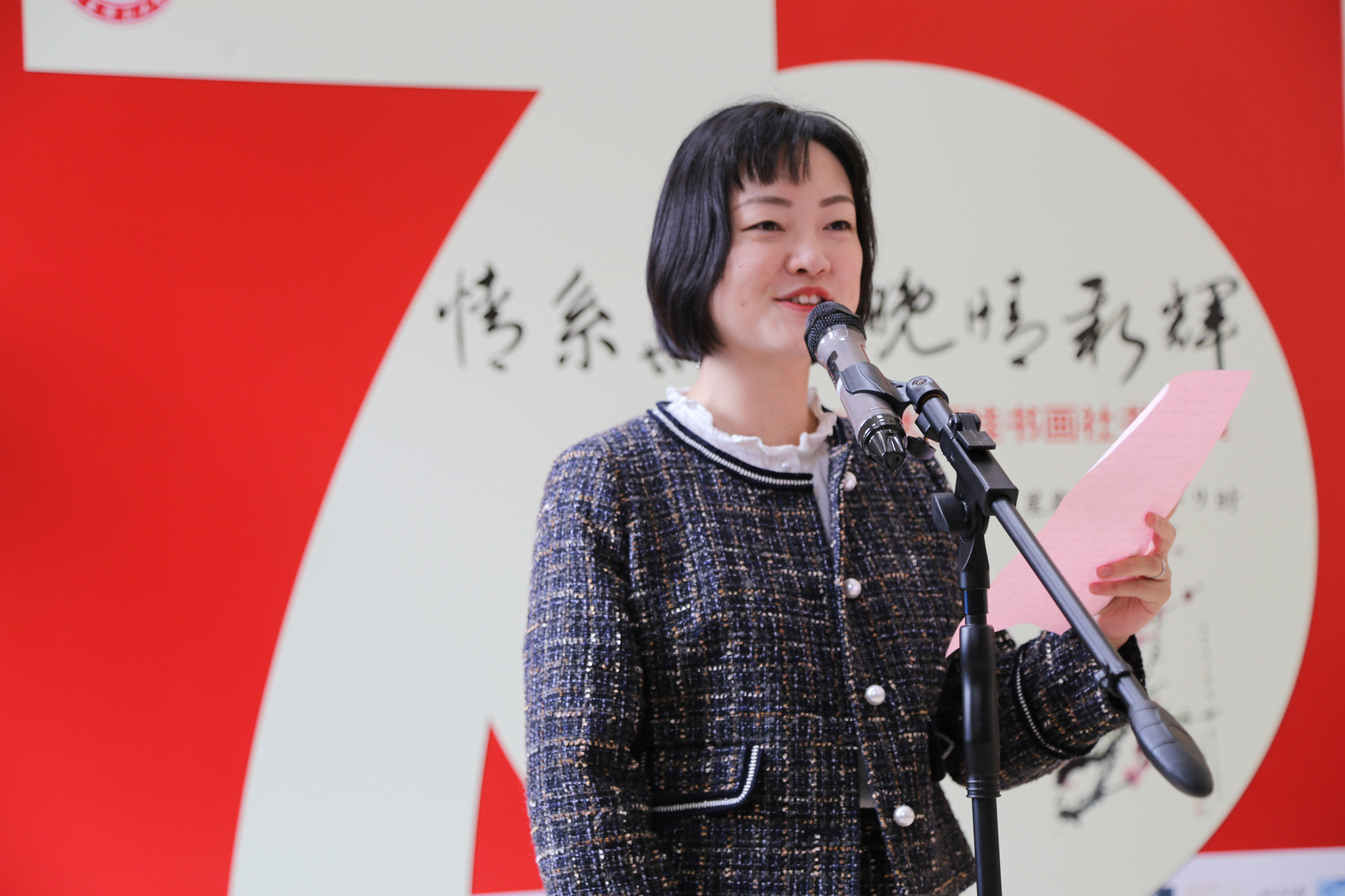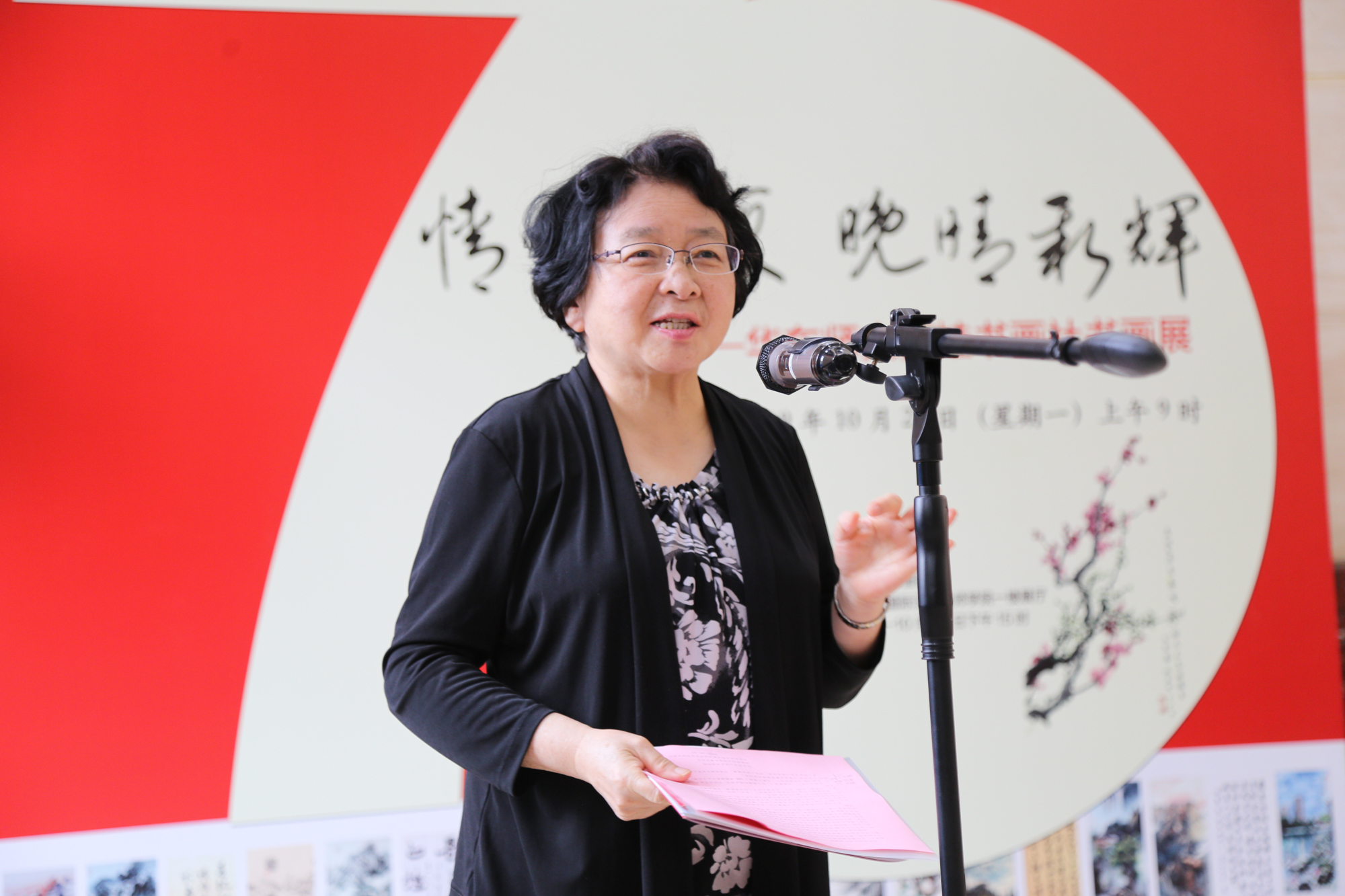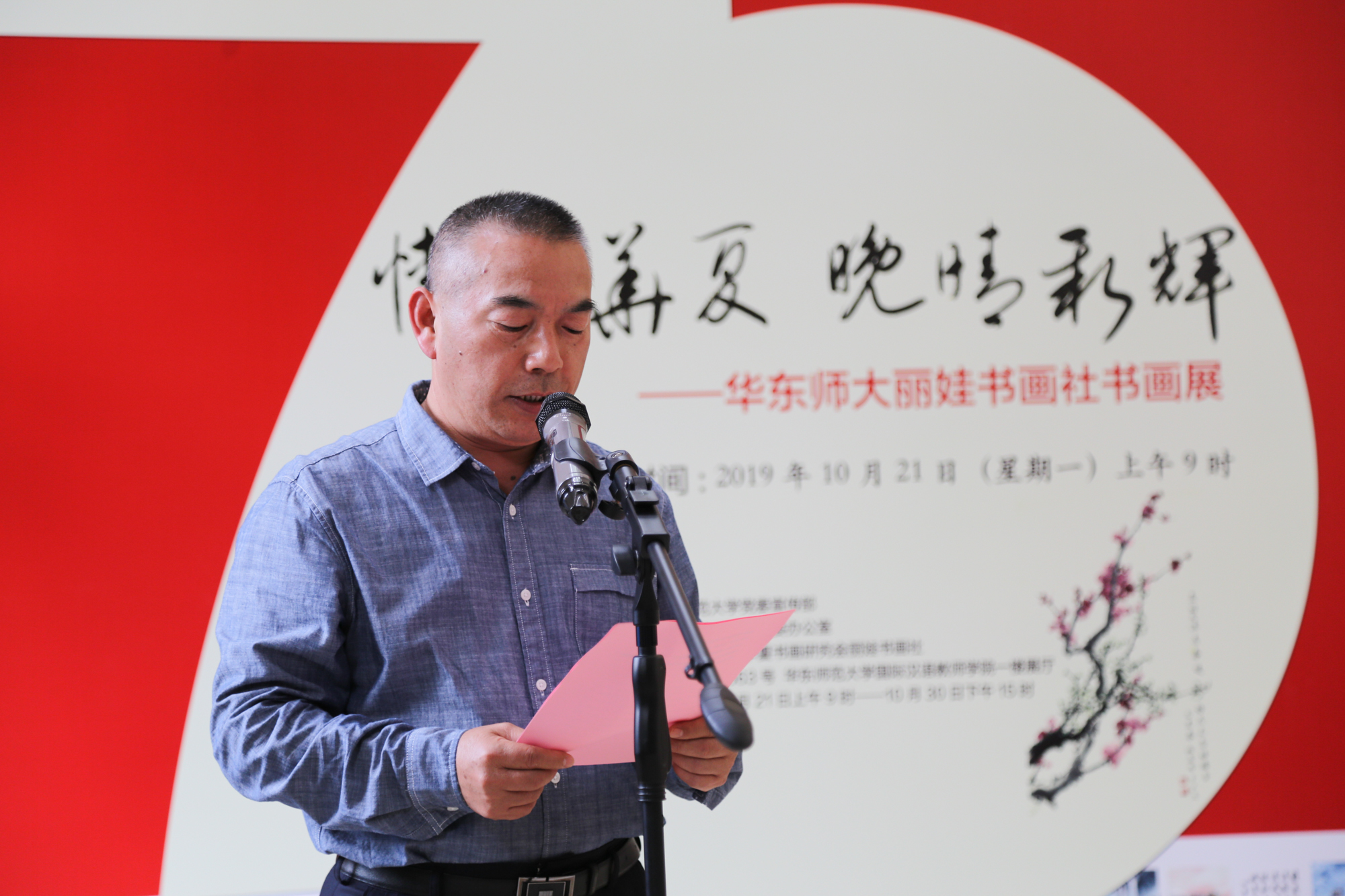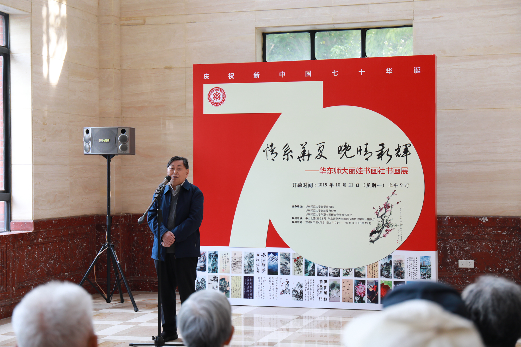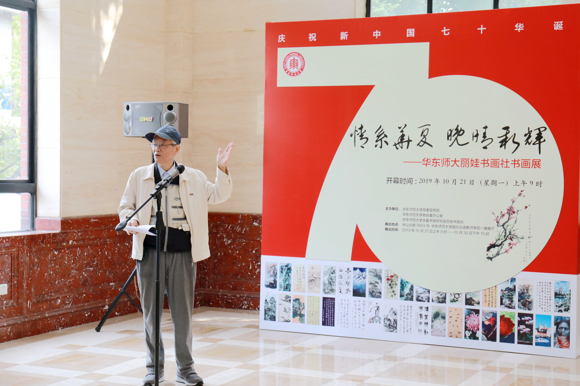 10月21日上午,由校党委宣传部、老龄办、华夏书画研究会丽娃书画社联合举办的“情系华夏 晚晴新辉”完美(中国)官方丽娃书画社书画展在中山北路校区国际汉语教师学院一楼展厅开幕。值新中国成立七十周年,校丽娃书画社全体成员围绕祖国大好河山,改革开放光辉成就等主题进行创作,尽情抒发对新中国的热爱和祖国繁荣昌盛的喜悦之情。老教授协会会长杜公卓,老龄办主任兼离退休党工委书记黄平,党委宣传部副部长李芸,校老年大学校长裴建华,离退休党工委副书记时明惠,老龄办副主任朱伟春、王丽娟,以及50余名退休老同志、师生作者出席了开幕式。开幕式由朱伟春主持。