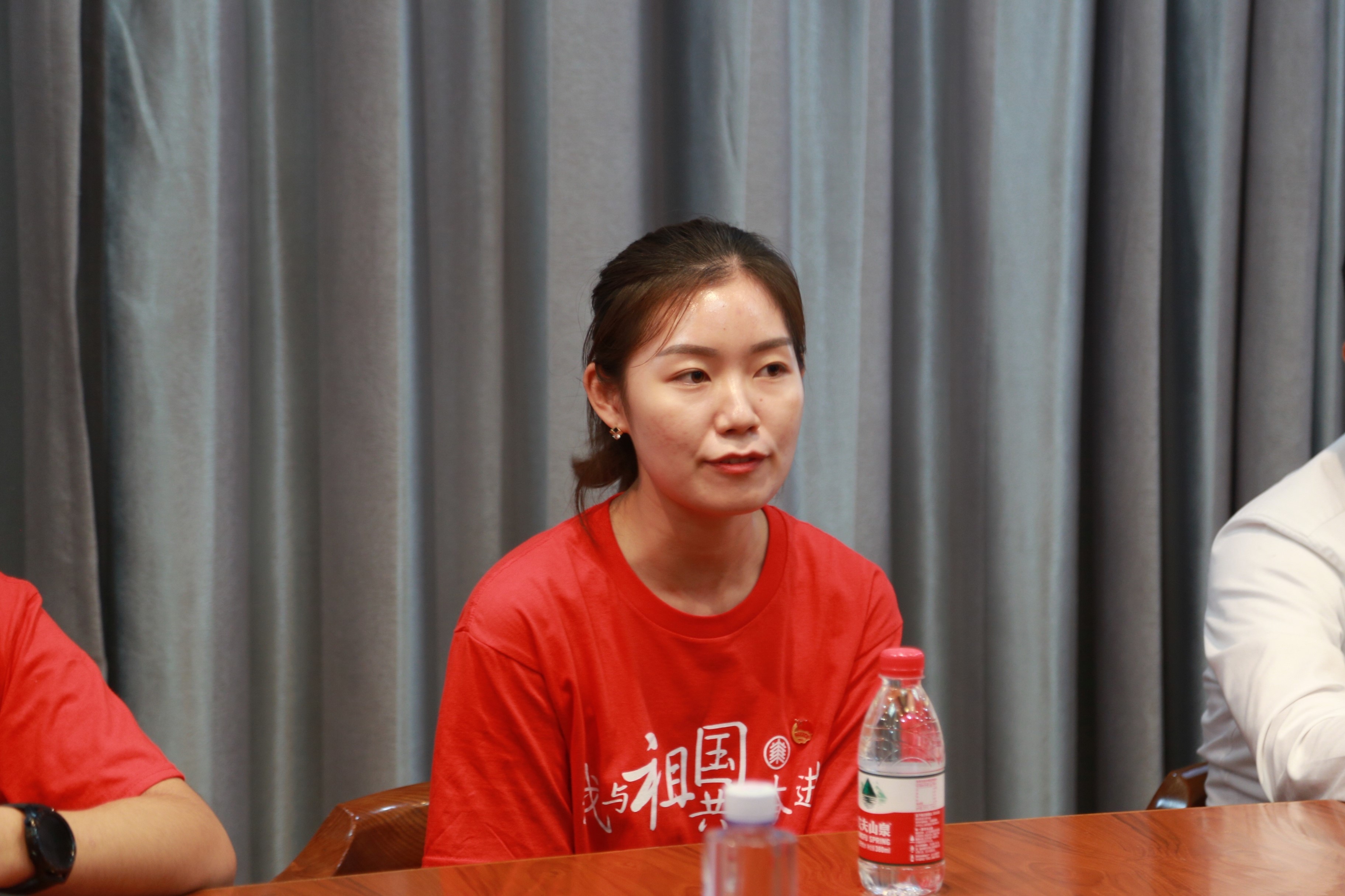 座谈会上,来自各学部、院系、书院的师生代表纷纷畅谈观感和体会。教育学部党委副书记沈晔谈到,在给同学们转发国庆当天举行升旗仪式和集体收看庆祝大会及阅兵式实况转播的通知后,200人的微信报名群瞬间“满员”,只能再新开一个群,最终收到了360余名同学的报名信息,同学们一早赶到现场的热情和在收看现场表现出的激昂也令她为之动容,“这就是最生动的爱国主义课堂!祖国正好,青春正好!”
