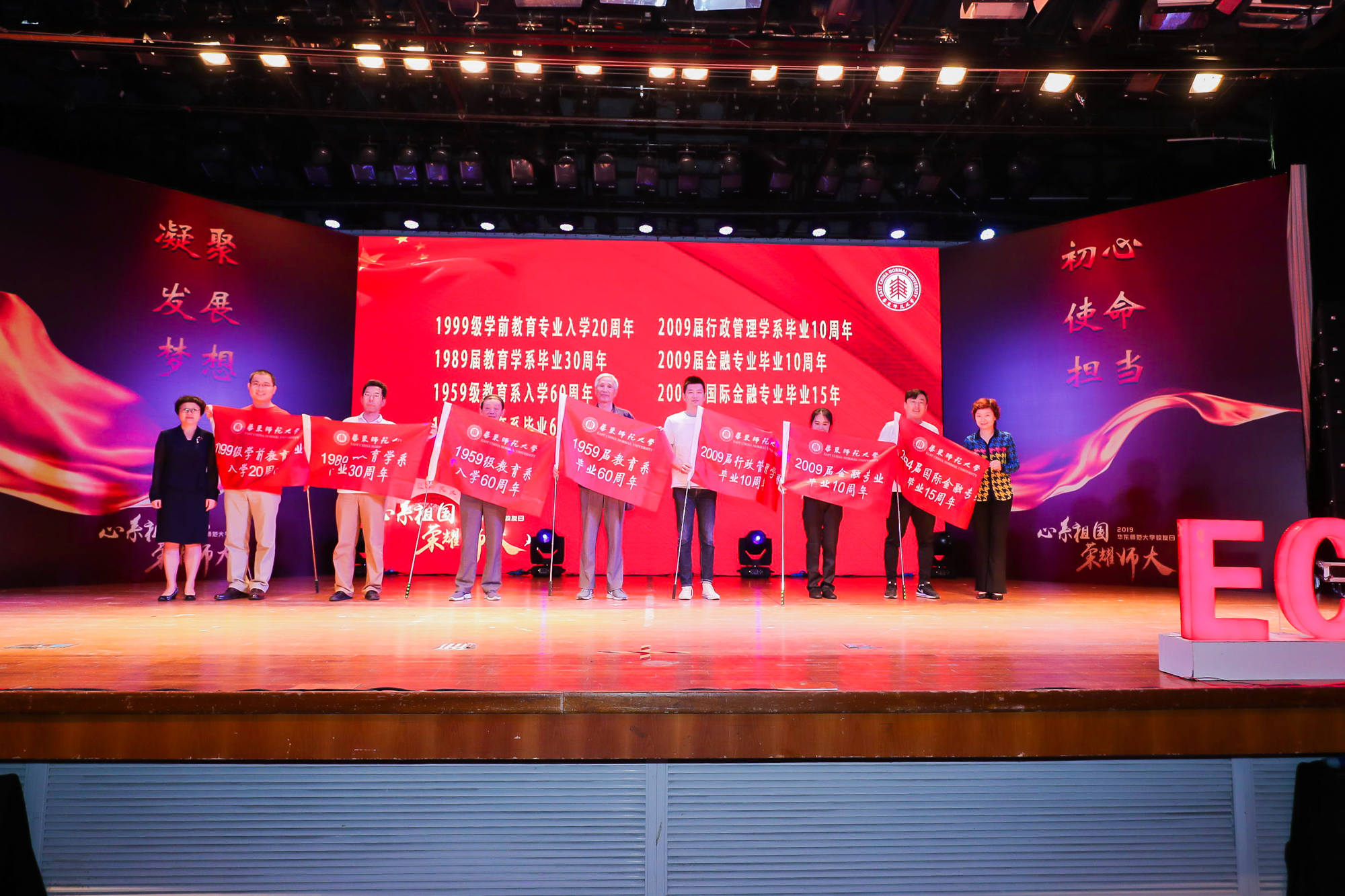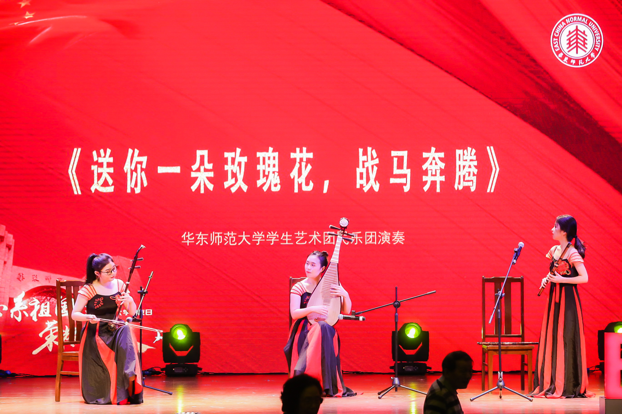 仪式现场,师生们为校友带来了精彩纷呈的节目。民乐团演奏了轻快活泼《送我一支玫瑰花》和激奋昂扬的《战马奔腾》;音乐学院青年教师郭希玥演绎的《我爱你,中国》将对祖国的无限深情抒发得淋漓尽致;校史视频《永远的初心》深切缅怀了在创业中坚持理想和信念的师大先辈们;校史剧《伯群校长》生动再现了大夏大学创办人王伯群校长为学校发展鞠躬尽瘁、呕心沥血的动人故事。