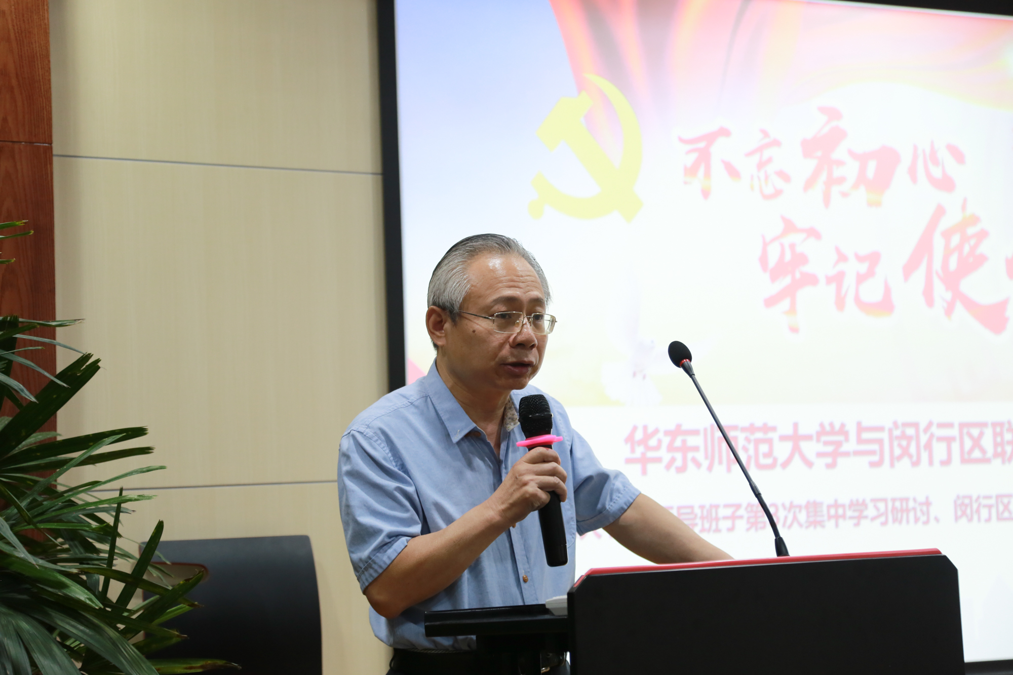 校党委书记童世骏回顾了习近平总书记今年5月在江西于都参观中央红军长征出发地、缅怀当年党中央和中央红军在苏区浴血奋战峥嵘岁月时发表的重要讲话,重温了习近平总书记在2016年纪念红军长征胜利80周年大会上发表的讲话中对伟大长征精神的深刻内涵的概括凝练,他表示,站在新中国成立70周年的重要时间节点,更要像总书记所说,牢记红色政权是从哪里来的、新中国是怎么建立起来的,不忘历史、不忘初心。较之于战争时期,中国共产党人在和平年代所面临的考验虽然有不同的表现形式,但对党的自身建设的要求和每个党员的党性检验在本质上是一样的。进入新时代,面对发展新形势、新挑战、新要求,更要守初心、担使命,保持强烈的自我革命精神,共同走好新时代的新长征之路。