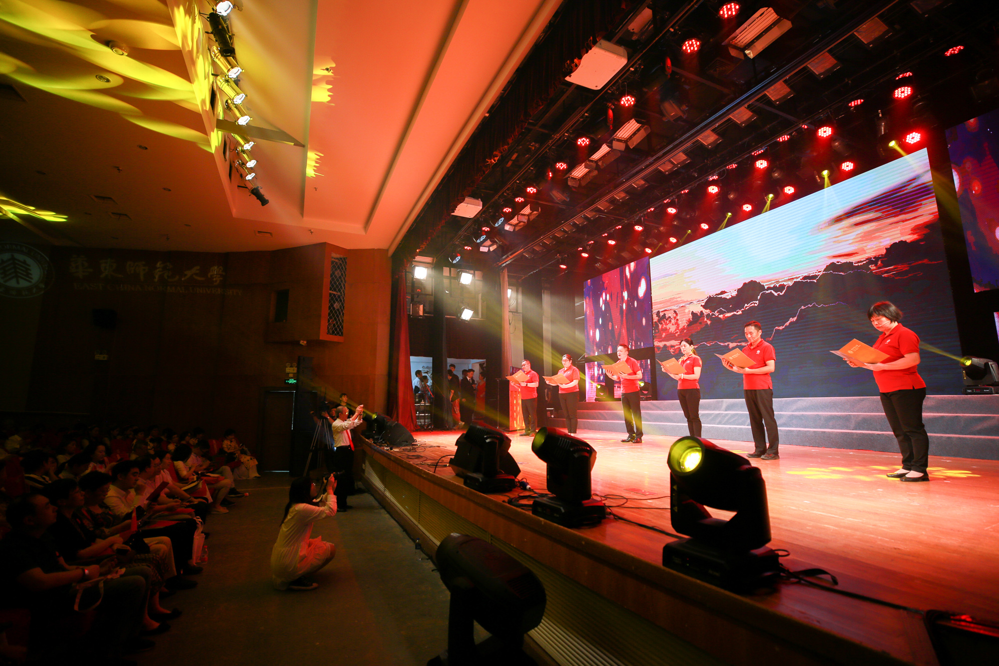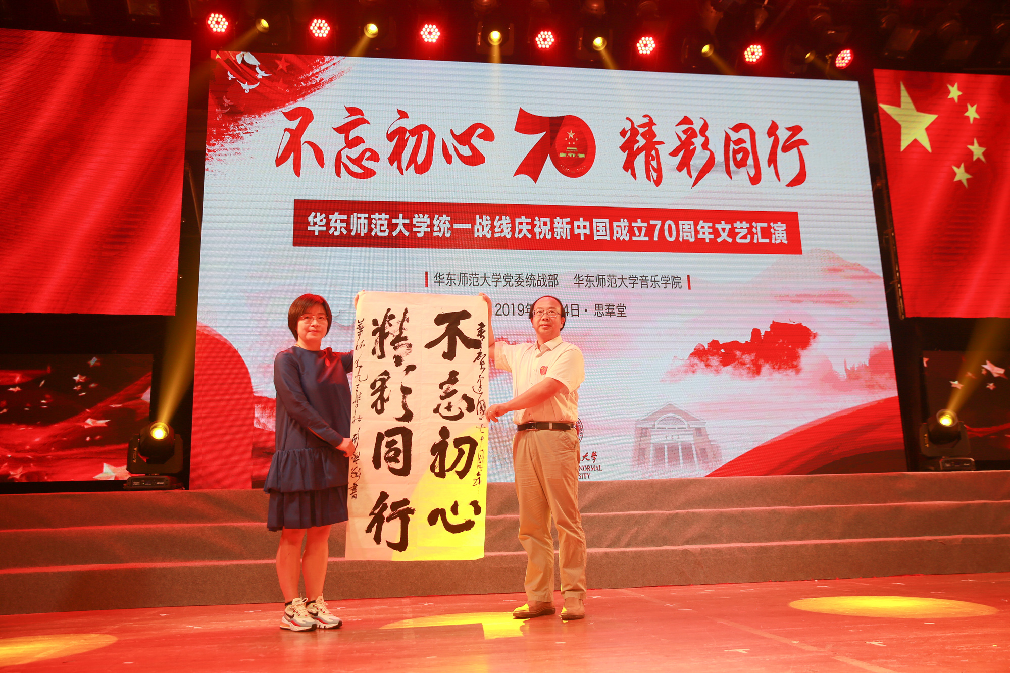 9月24日下午,“不忘初心·精彩同行”我校统一战线庆祝新中国成立70周年文艺汇演在中山北路校区思羣堂举行。校党委书记童世骏、党委常务副书记王宏舟、党委副书记曹友谊、市委统战部党派处处长刘红、市委统战部党外干部处王晓春、市教卫党委统战处李婕妤、农工党市委组织部副调研员郁正蕾,以及上海交通大学、华东理工大学、上海外国语大学、上海财经大学等12所上海市兄弟高校的统战部门同志,以及校民革、民盟、民建、民进、农工党、致公党、九三学社和无党派高知联、侨联、民族联、台联、欧美同学会、留联会等党派团体的400余名成员参与本次活动。