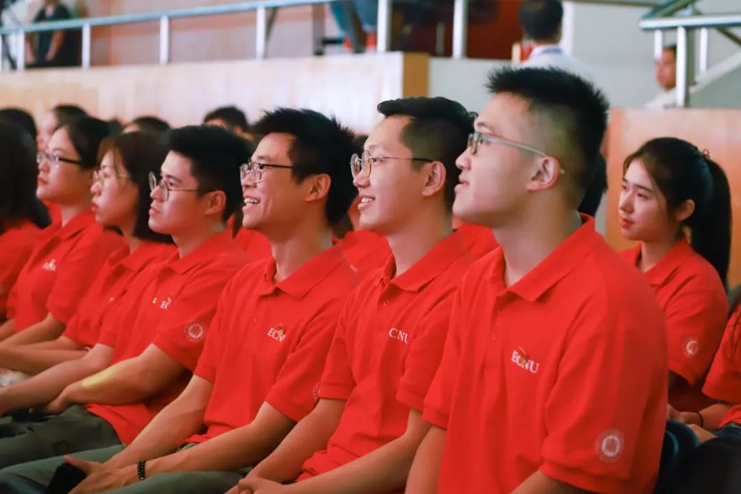 在活动现场,马克思主义学院孟宪承书院思想政治教育专业本科生纪晨毓,教育学部教师教育学院学科教学专业硕士研究生李孟飞、数据科学与工程学院计算机技术专业硕士研究生王伟杰、生命科学学院生物化学与分子生物学专业博士研究生于袁欢等作为优秀学生代表受邀分享自己“将小我融入大我”,投身基础教育、志愿服务、创新创业和科研攻关的报国之志。