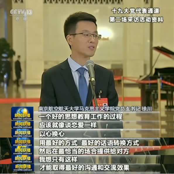 很多人知道徐川,是从一篇长达4000字的博文《我为什么加入中国共产党?》开始。为了回答学生的疑问,他以文作答,一时间该文被300多个公众号转载,日点击量200万。其实早在这之前,他就一直耕耘网络思政平台,追随着学生社交平台使用习惯的变迁,从博客到人人网,从微博到微信,线上线下与学生零距离互动。他说:“做教育,尤其是思政教育,要把有意义的事情做得有意思。用学生喜欢的平台、他们喜欢的方式、他们喜欢的语言、他们听得懂的语言或愿意听的语言去,与他们平等交流,春风化雨。”徐川的微信公众号“南航徐川”自2015年1月开通以来,已累计发文266篇,吸引了30万粉丝关注,浏览量达到上千万,为大学生开辟了一片精神空间。