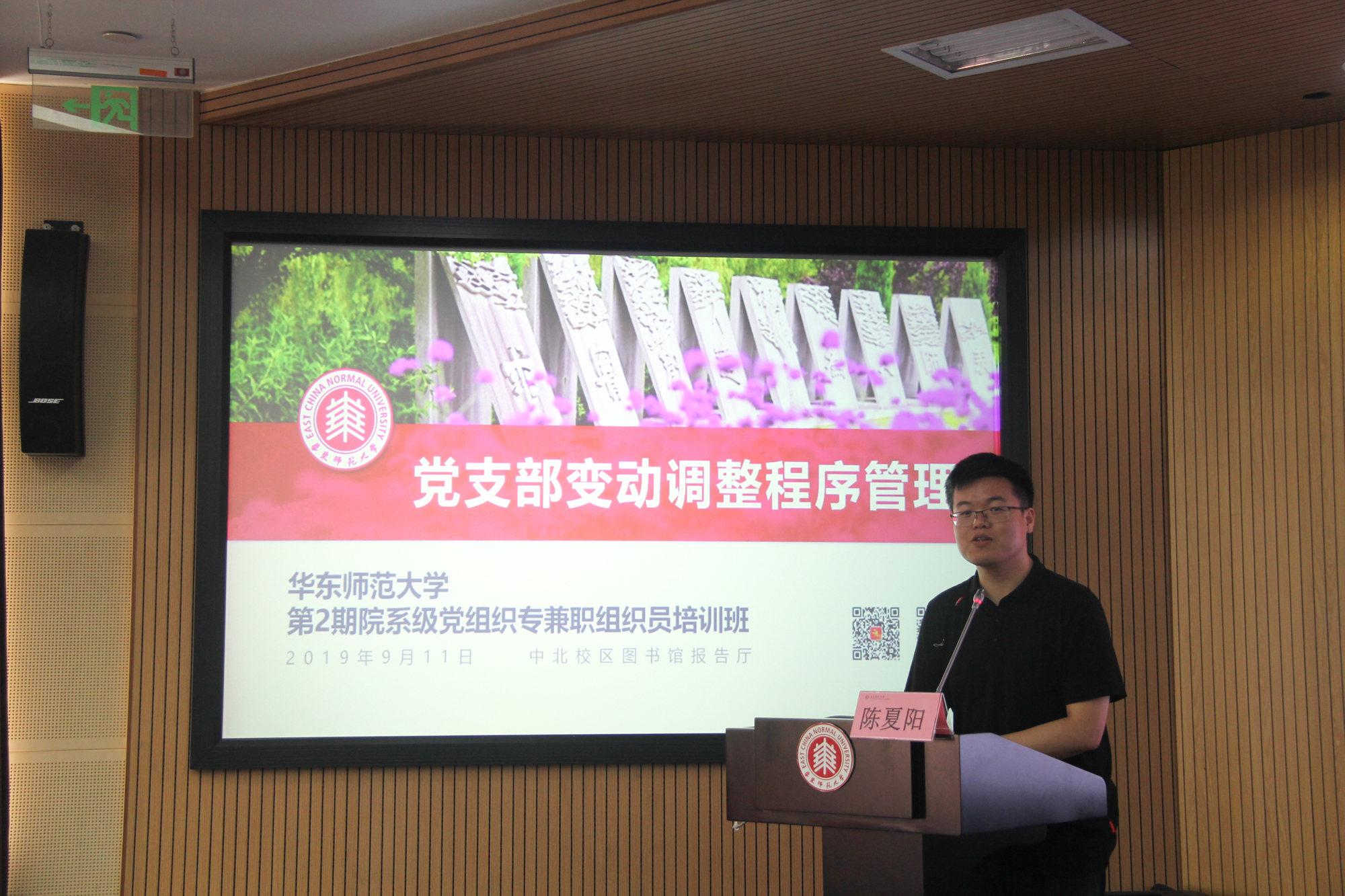 9月10日下午及9月11日上午,组织部干部为全体学员开展了党务实务培训。组织部副部长童愈亮为学员解读学校党支部工作细则、组织部专职组织员李海芬为学员进行发展党员、党籍管理工作讲解以及组织工作信息系统操作培训,组织部干部仝夏蕾和陈夏阳分别为学员讲解了党费和党建工作经费管理以及党支部换届程序,培训内容立足实际、殷实详尽,为组织员更好开展工作奠定基础。