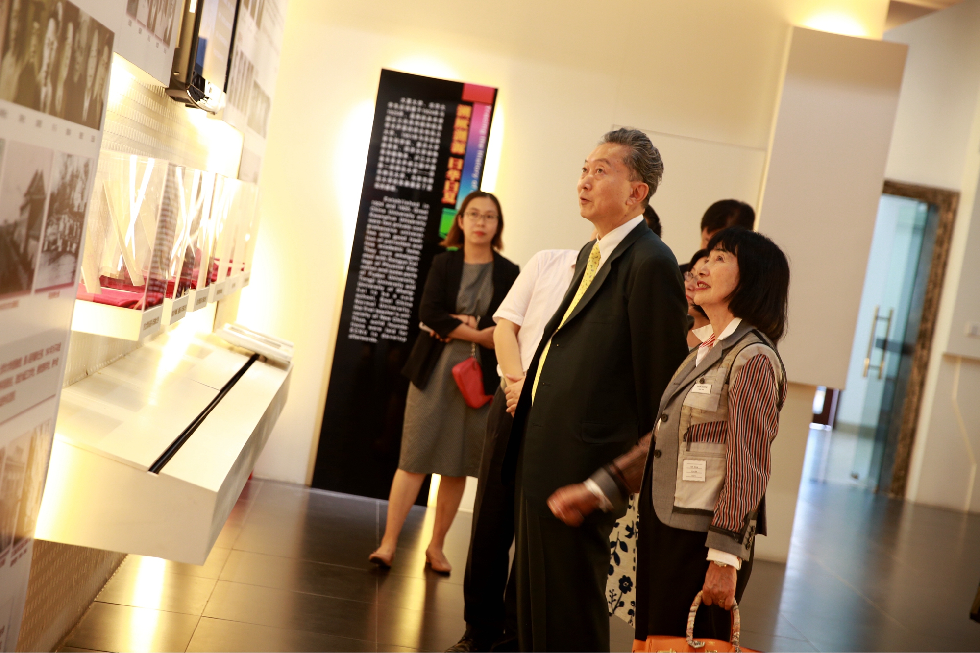 鸠山由纪夫和夫人鸠山幸参观校史馆