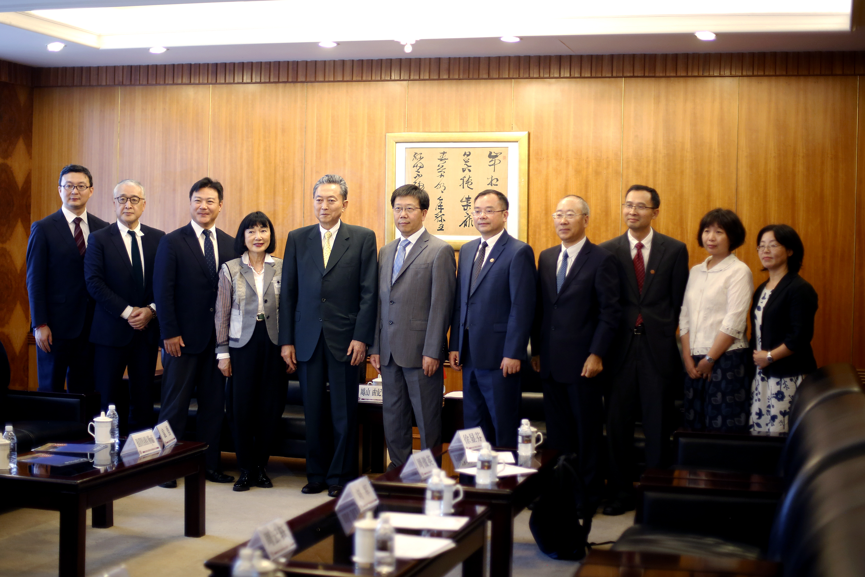 在和钱旭红校长会谈时,鸠山由纪夫强调,中国的“一带一路”倡议和他秉持的“东亚共同体”都是能共同促进人类幸福的“同心圆”,都是要加强区域联系,让当地社会更加稳定,并且为世界和平作出贡献。