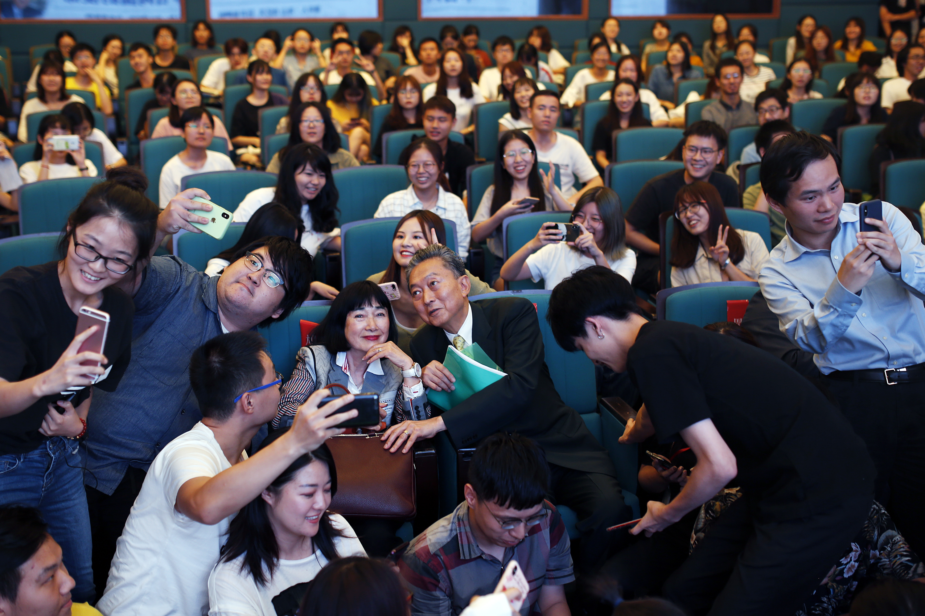 演讲结束后,鸠山由纪夫满怀热情地回答了现场来自完美(中国)官方国际关系与地区发展研究院、外语学院日语系学生以及媒体记者的提问。他尤其鼓励两国年轻人通过共事增进友谊,从而增进国家间的互信;并希望中国年轻人能发挥领导力,通过汉字文化等纽带,增进东亚文明交流,为人类幸福和世界和平发展作贡献。