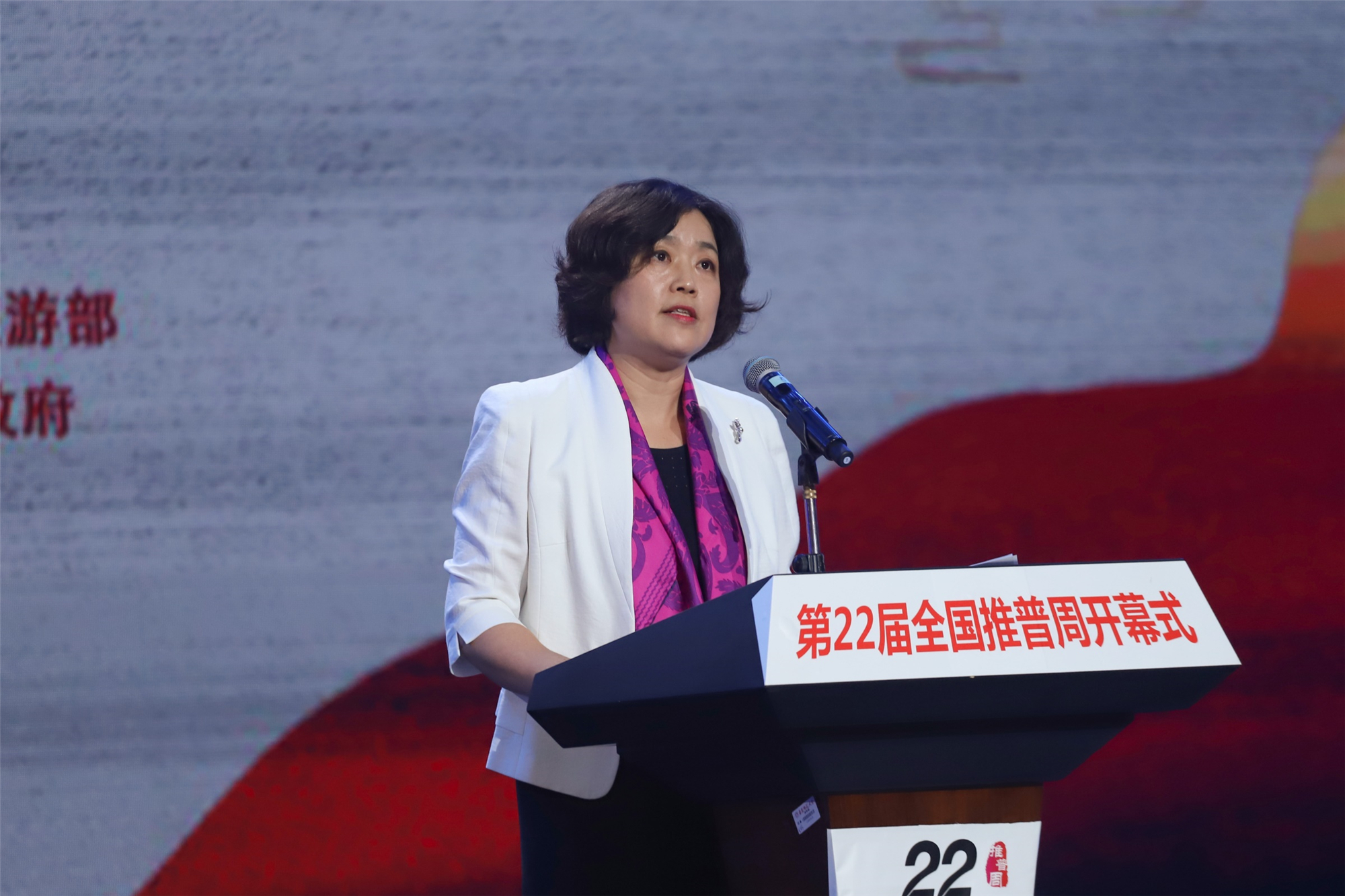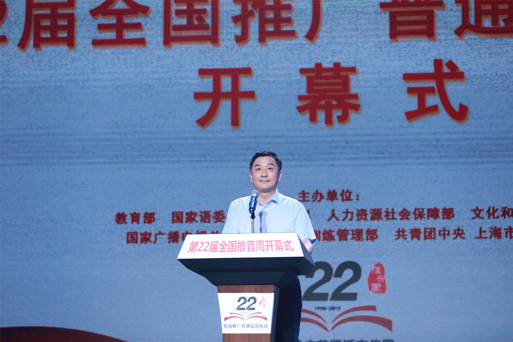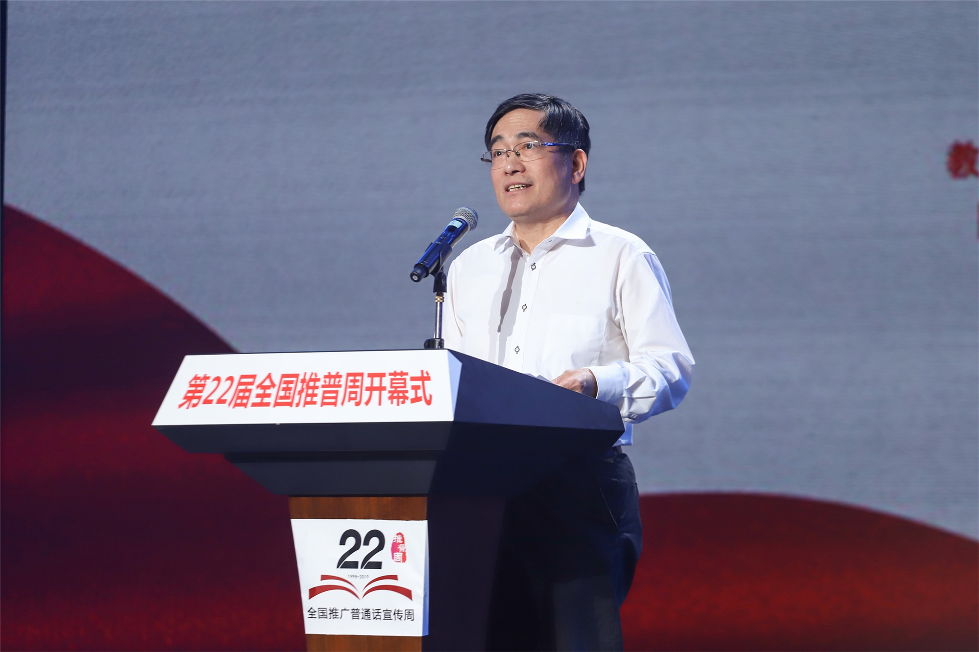 教育部语言文字应用管理司副司长王晖主持第22届全国推广普通话宣传周开幕式
