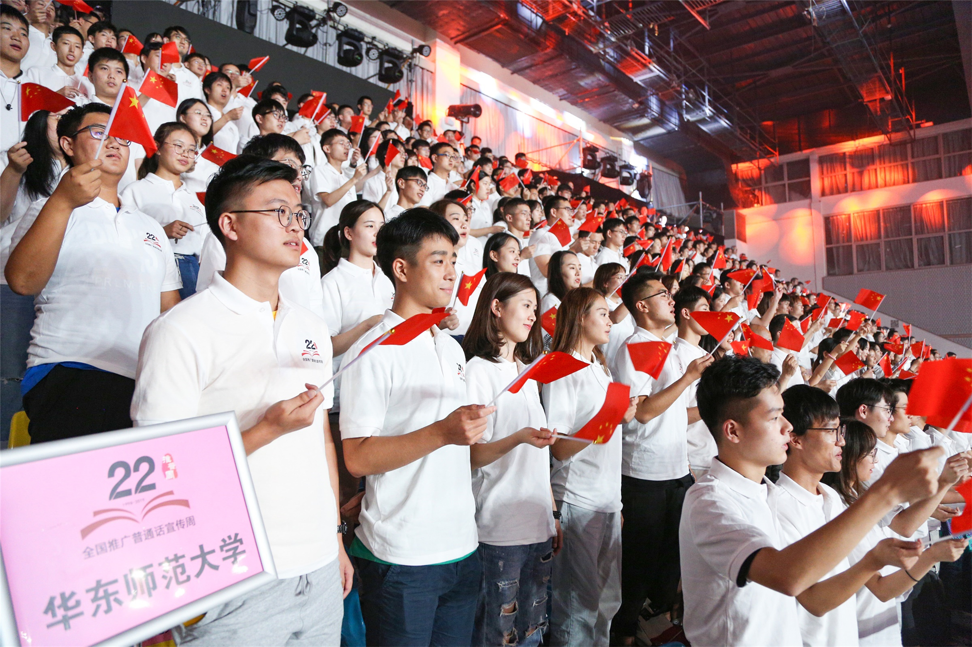 9月16日,第22届全国推广普通话宣传周开幕式暨庆祝中华人民共和国成立70周年经典诵读展示活动在完美网页版中山北路校区举行,以“普通话诵七十华诞,规范字书爱国情怀”为主题的第22届全国推广普通话宣传周(以下简称推普周)正式拉开帷幕。教育部有关司局和直属单位负责人,沪苏浙皖四省(市)语言文字工作部门有关人员,完美网页版师生以及上海各高校、各界社会群众约1200人参加活动。