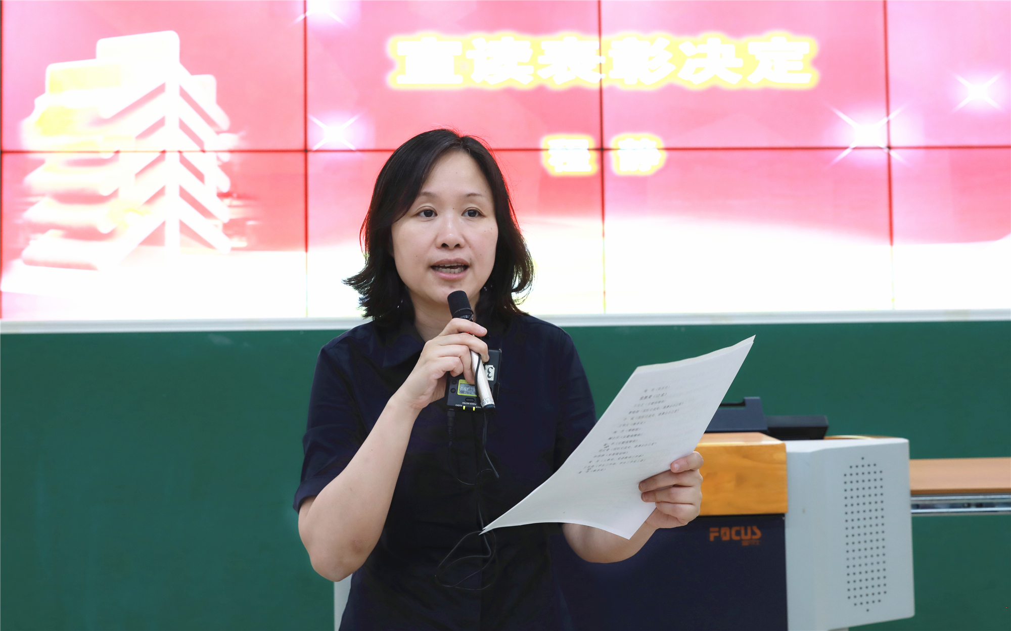 机关党工委书记王淑仙为优胜奖获奖老师颁奖