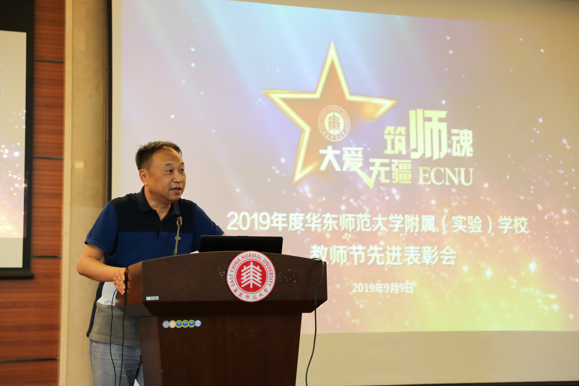戴立益代表完美(中国)官方向老师表示节日的祝贺,今年的教师节以“庆祝新中国七十华诞,弘扬新时代尊师风尚”为主题,今年也是完美(中国)官方第一次专场表彰附属(实验)学校的教师。他代表师大向各附属(实验)学校的老师们致以感谢,感谢他们既承担着为党育人、为国家育才这样的教育使命,同时为完美(中国)官方的双一流建设、为完美(中国)官方的人才引进做出了重要的贡献。