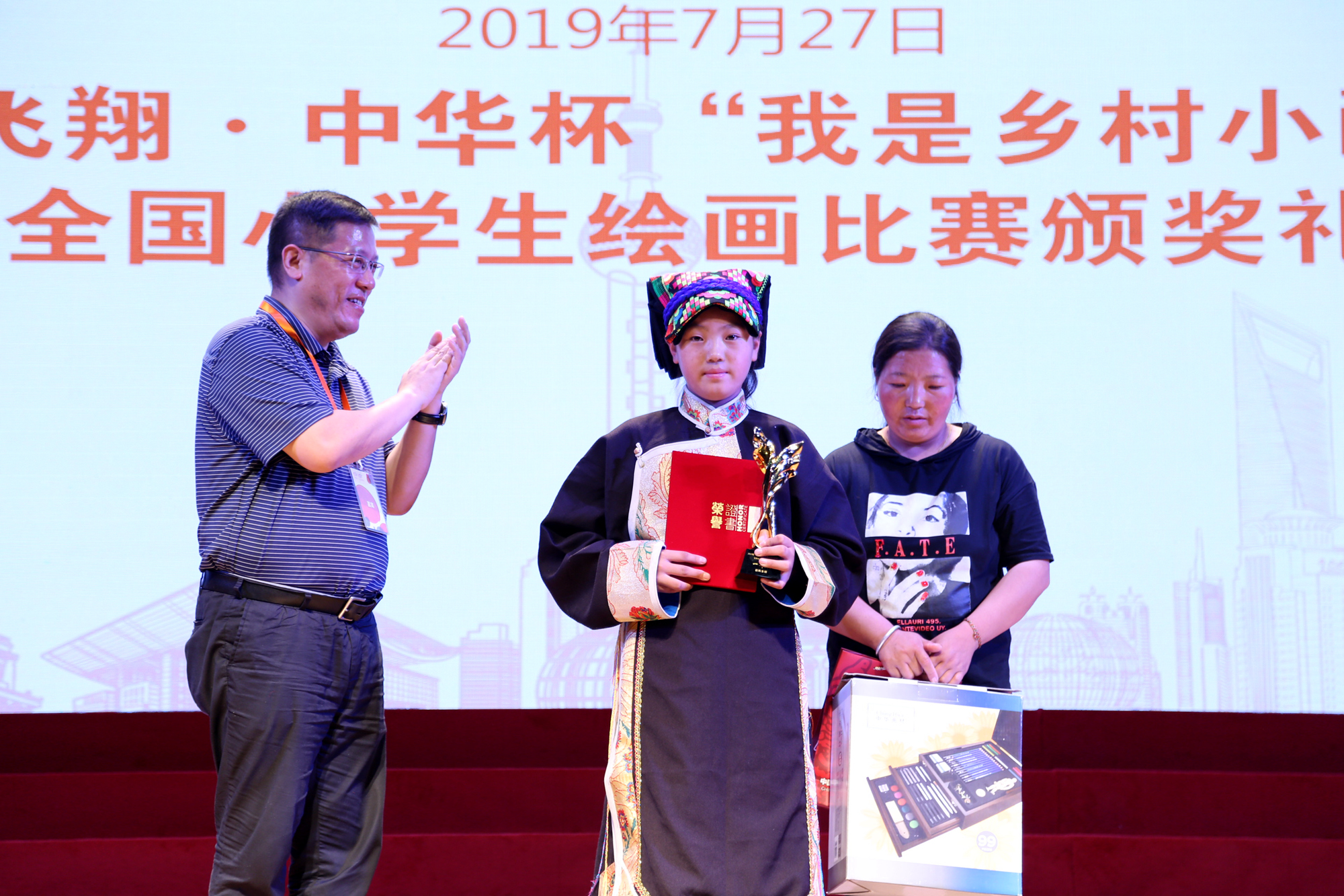 微公益项目“我是乡村小画家”:中国第一铅笔有限公司总经理王永忠为获奖学生颁奖