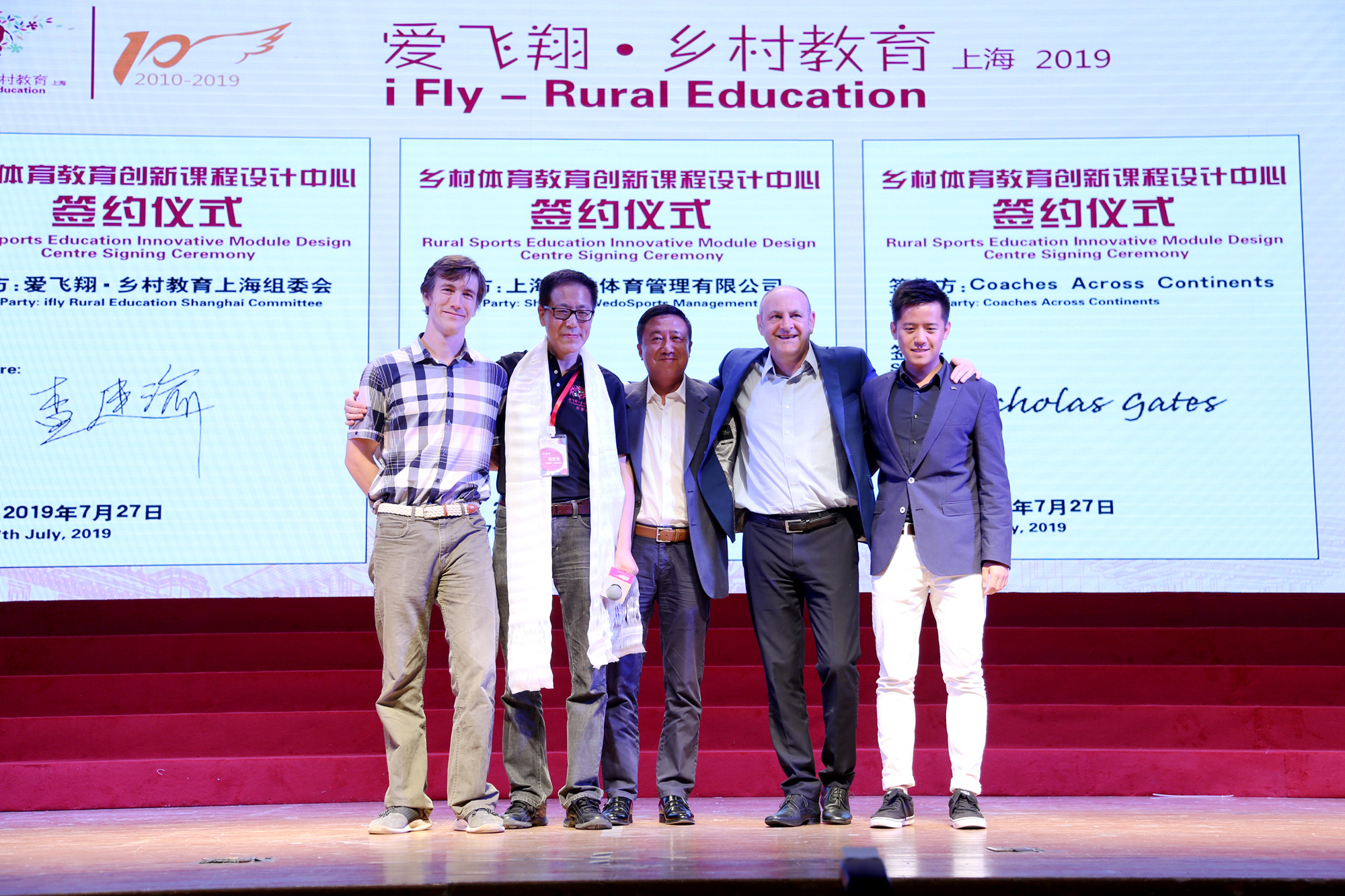“爱飞翔”的成功,离不开各大企业的支持与合作,查建渝代表“爱飞翔·乡村教育”上海组委会与上海汇动体育管理有限公司、Coaches Across Continents(英国CAC)代表签约,组建乡村教育乡村体育课程设计中心,未来将把CAC的教育培训模式运用到乡村体育教育中。