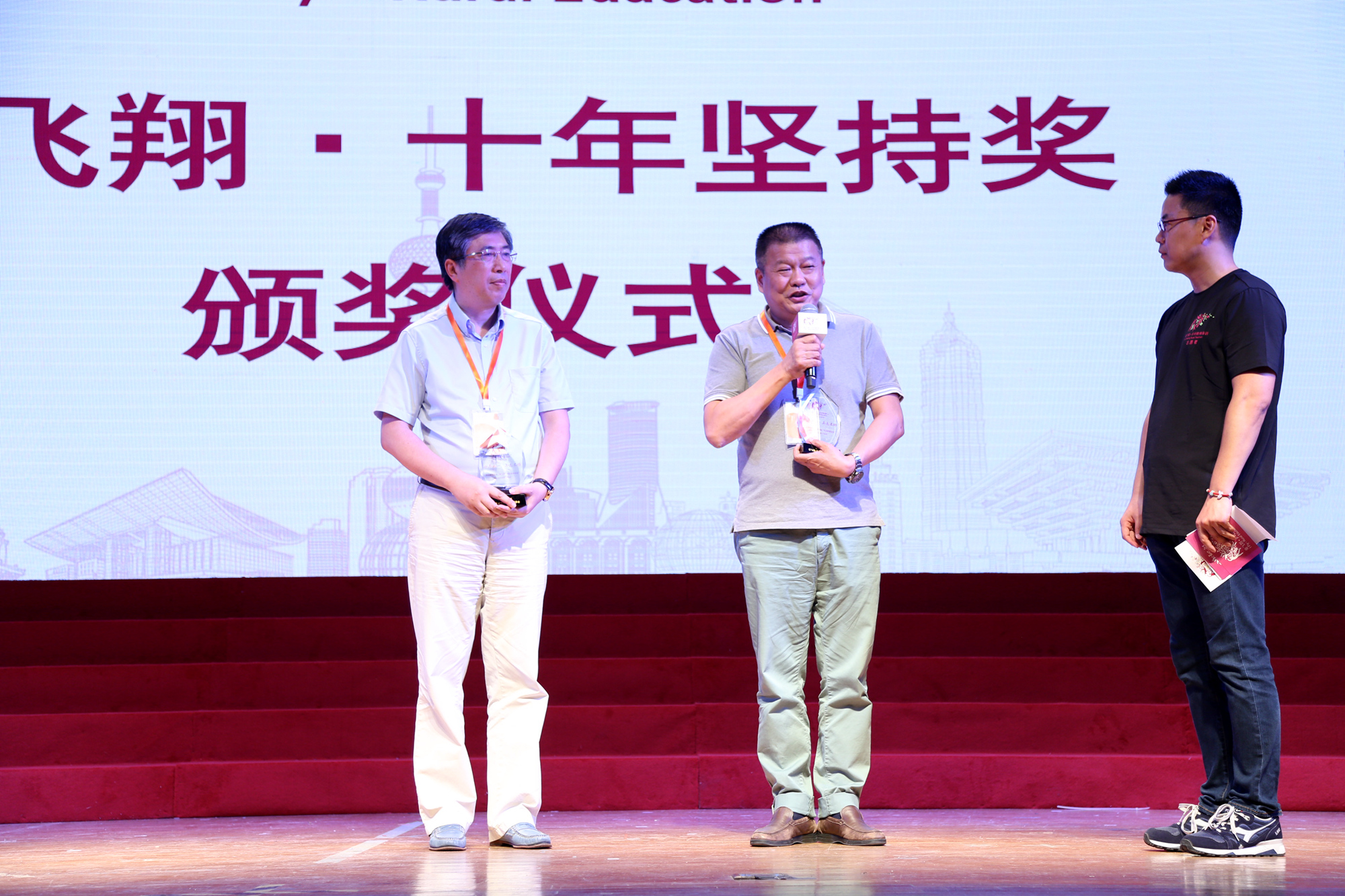 十年“爱飞翔”培育了超过1500名乡村教师,2017年“爱飞翔”的参训教师郑师富作为往届教师代表向大家讲述了在“爱飞翔”收获的点点滴滴,以及他回校后如何把所见所感传递给孩子们。当他给孩子们分享在上海见到的一切时,孩子们的眼睛都亮了,他们前所未有地渴望知识,渴望走出去看看这个世界。