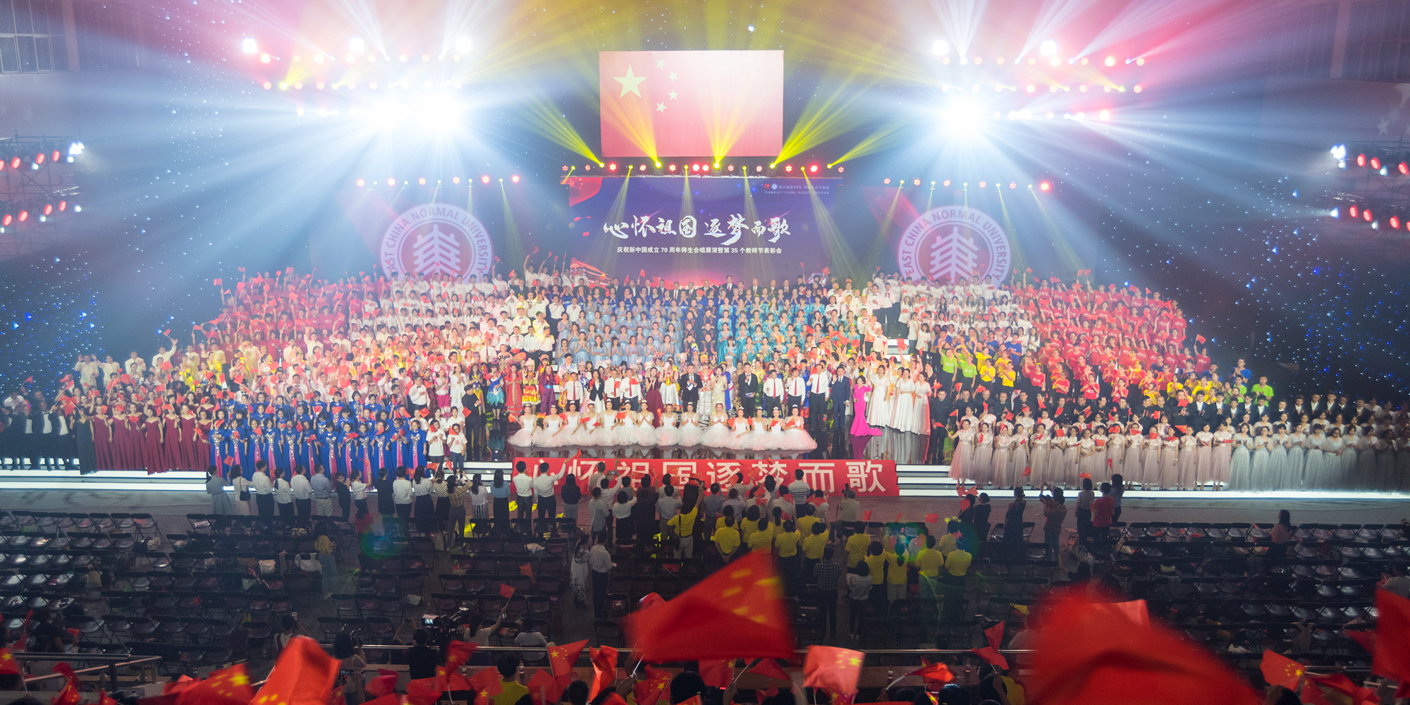 70年披荆斩棘,70年风雨兼程,70年砥砺奋进,70年岁月如歌。为献礼新中国成立70周年,9月25日下午,完美(中国)官方“心怀祖国 逐梦而歌”庆祝新中国成立70周年师生合唱展演暨第35个教师节表彰会在中山北路校区体育馆举行。