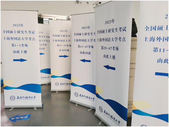 不少考生并非本校考点的学生,考点又因疫情防控无法提前向考生开放“踩点”。为方便考生快速准确入场,上海外国语大学研究生院精心制作了详细的讲解视频,涉及进场路线、考场具体位置、休息场所等。因涉及教学楼多、楼层也较多,上外研院制作指引牌以及立体的考场门贴,还在每个考场外特意铺设了一张塑料布,供考生放置随身物品。