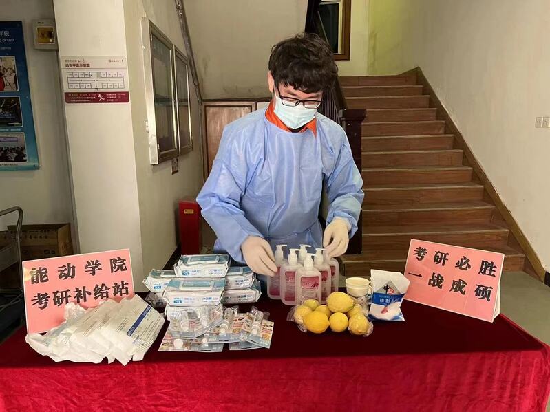 其实,各校暖心举措早在考研备考阶段就有了。上海海事大学、上海理工大学等校统一安排学生做单人单管核酸检测。“出寝室几十米,就可以做到单人单管核酸,很方便。”上理工能源与动力工程学院戚林泽说。经过多方筹措,能动学院为200余名考研学子送去“加油礼包”,里面既有一次性医用防护口罩、消毒湿巾、消毒凝胶以及消毒喷雾等防疫物资,同时还有柠檬和食盐等生活用品,辅导员还贴心寻求了一些抗“阳”小妙招分享给学生,如用蜂蜜柠檬水补充发烧发热造成的体内电解质流失,用高渗盐水漱口缓解感染病毒后带来的喉咙剧痛等不适症状。