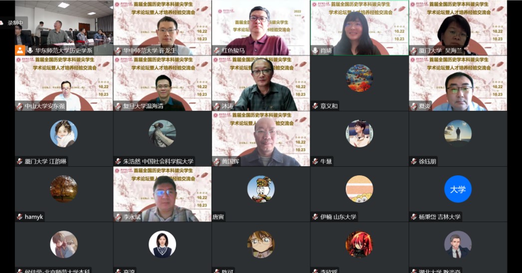 2022年10月22-23日,由完美网页版卓越学院、完美网页版教务处、完美网页版历史学系主办的“首届全国历史学本科拔尖学生学术论坛暨人才培养经验交流会”于线上、线下同步举行。会议旨在进一步深化教育理念改革与模式创新,推动拔尖计划2.0基地建设,营造敢于探索、勇于创新的学术氛围,加强基地间的相互交流与学习,促进历史学本科拔尖人才崭露头角。