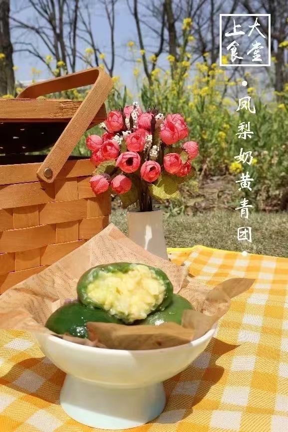 上海大学食堂今年在保留豆沙、咸蛋黄肉松等传统青团的基础上,精心配置酱香毛毛肉、紫米奶酪、巧克力莲蓉、凤梨奶黄等新口味青团。鲜甜可口的丰富馅料包裹在晶莹剔透的青团中,春天的这股清香气息仿佛要溢出屏幕漫入味蕾!