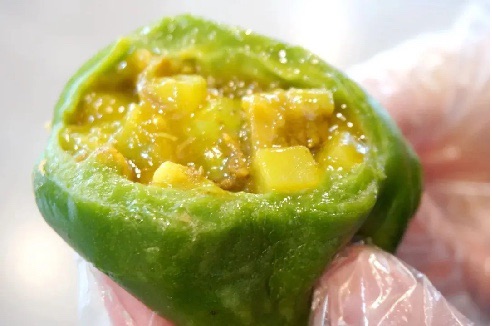 咖喱牛肉青团:内馅是浓郁的咖喱牛肉,咸香适口,搭配清香的外皮,味道相当不错!