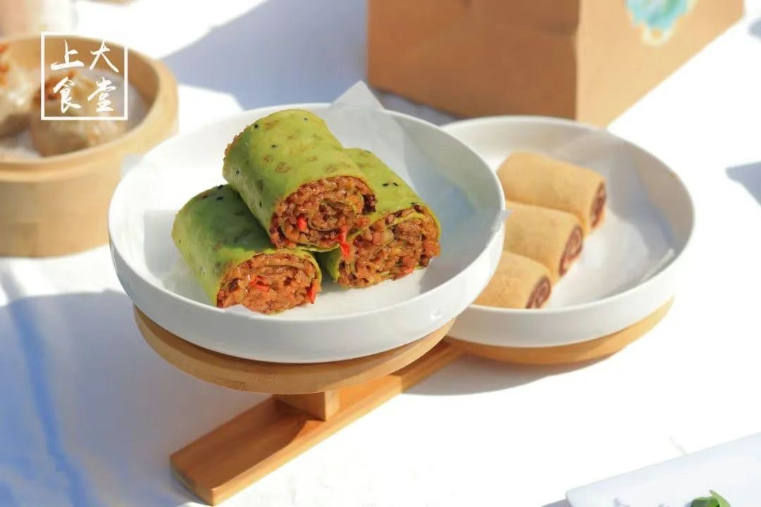 上海大学食堂踩着时令步伐,创新性地利用春菜推出了多款特色点心供师生们品尝,包括麦青小方蛋糕、红豆艾团酥、荠菜虾皮鸡蛋包、春笋糯米卷等,色香俱全、馅料饱满、营养多元。
