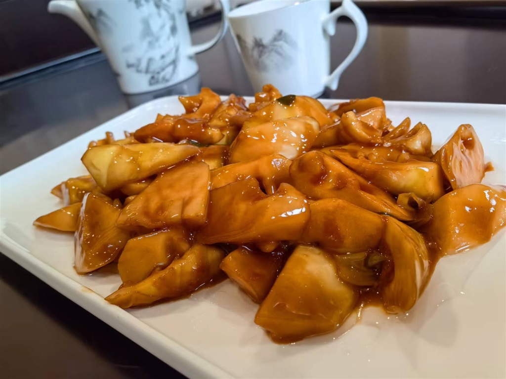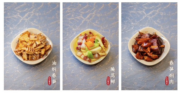 油焖竹笋:只有吃过了春笋,才算识得了春的滋味儿。选取竹笋最嫩的部分烹饪,色泽红亮,鲜嫩爽口,鲜咸而带甜味,百吃不厌。