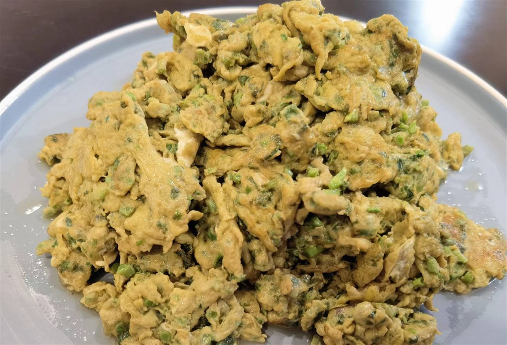 香椿炒蛋:吃香椿是吃春天的味道,绿色的香椿、黄色的鸡蛋,颜色鲜黄嫩绿、清清爽爽,口感滑嫩,香味独特。