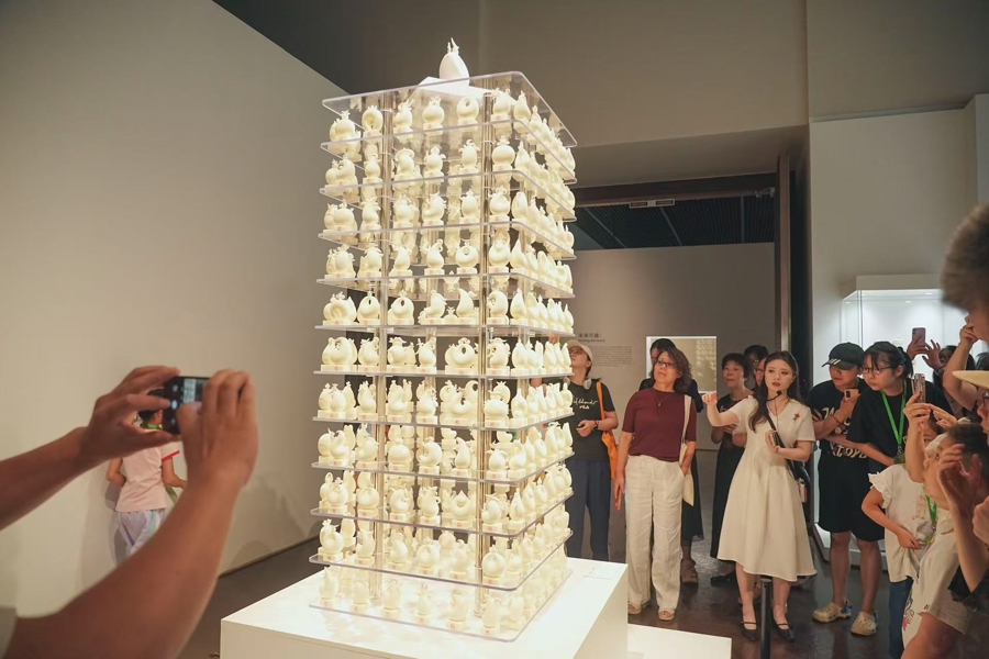 饮茶,看宋画山水在杯壁苏醒;行车,见玉瓷云纹随光影流转;品香,香氛沿白瓷脉络渗透,花朵绽放满室生香……围绕展览,中华艺术宫还特别推出一系列兼具艺术性、实用性与文化内涵的展览文创品,既彰显德化瓷“白如凝脂、温润如玉”的传统特质,又巧妙融入场馆特色和上海城市元素,以创新设计诠释中式美学的当代演绎,让传统白瓷焕发当代生命力。