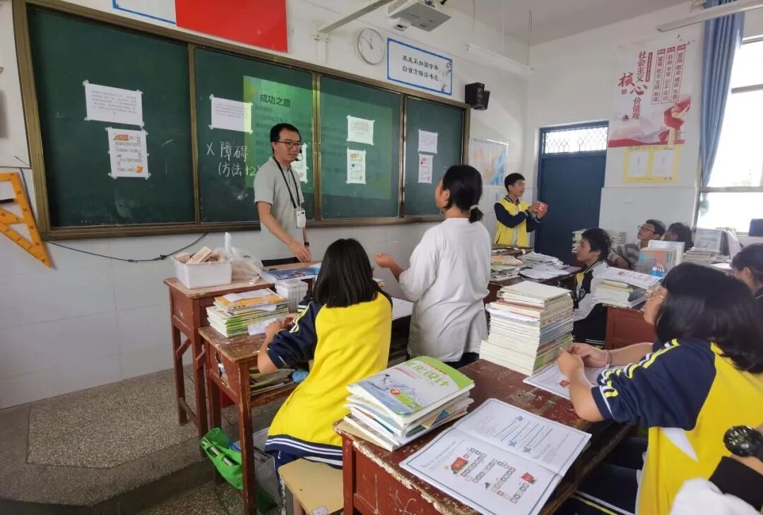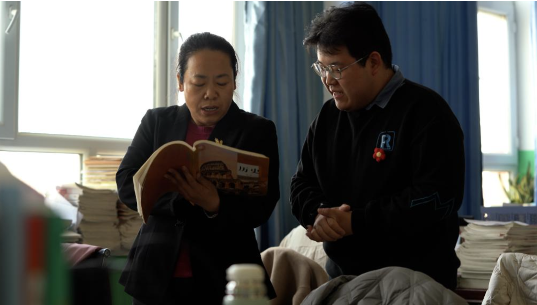 2025年4月,新疆且末县第一中学教师侯朝茹在给新支教老师讲述授课要点。