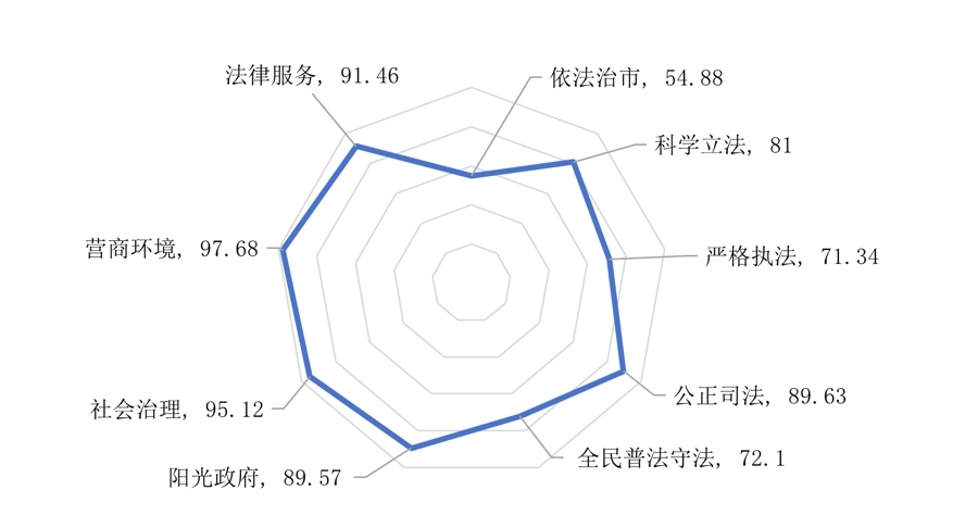 长三角城市法治指数测评于2020年启动,指数构建了依法治市、科学立法、严格执法、公正司法、全民普法守法、阳光政府、社会治理、营商环境、法律服务等九大一级指标、115项二级指标的测评指标体系。