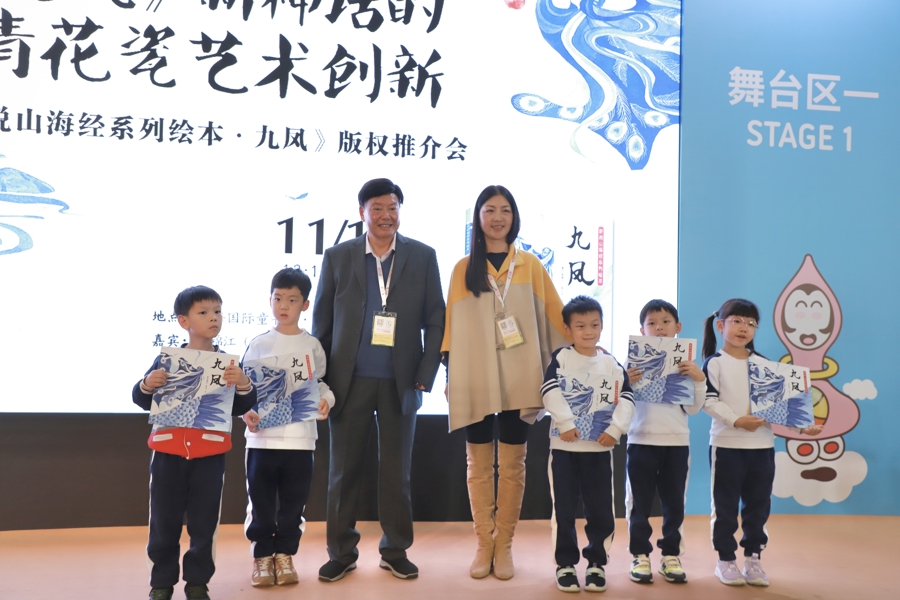 万琼还与小读者进行青花瓷绘画互动,还特别展示了为绘本《九凤》创作的文创青花瓷盘、冰箱贴等,吸引了诸多读者驻足关注。
