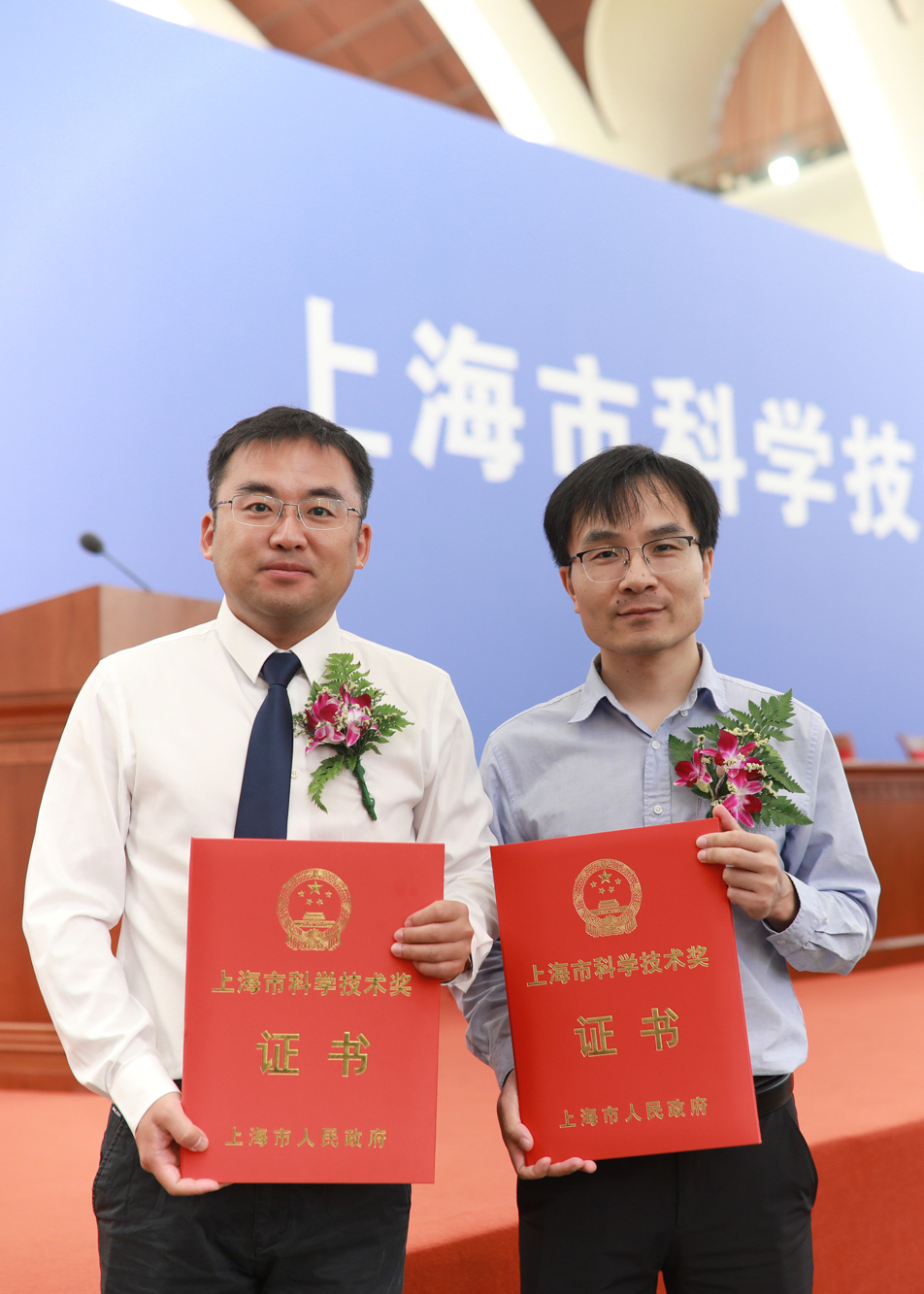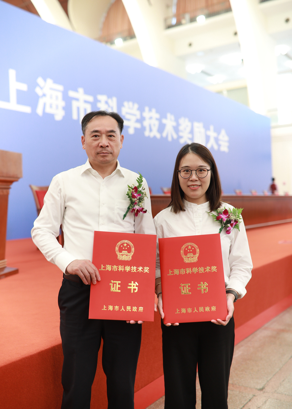 完美(中国)官方获奖团队代表在上海市科学技术奖励大会现场