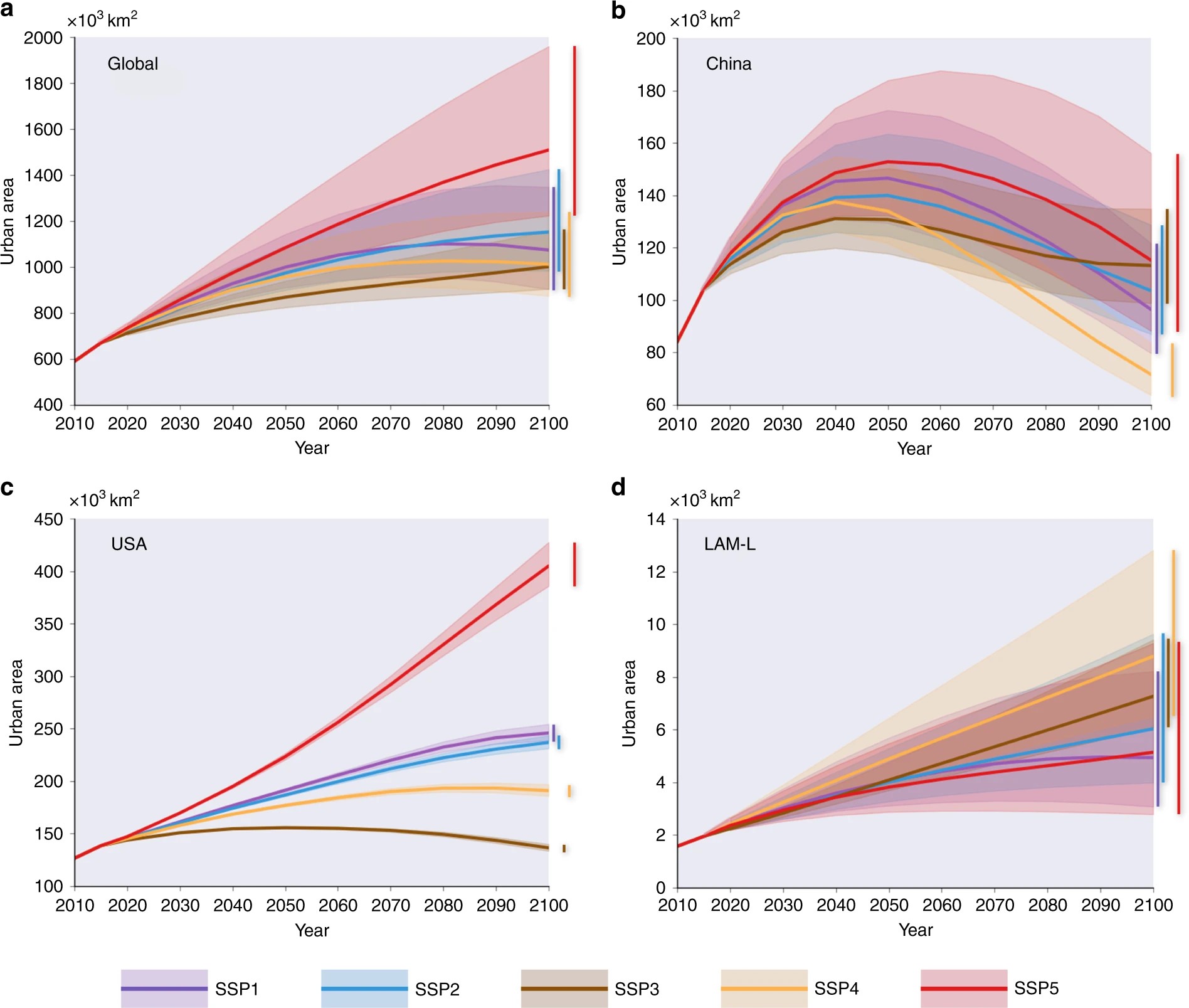 2100年的世界城市空间扩展是怎样的?《自然通讯》(Nature Communication)最近刊发了完美(中国)官方地理科学学院黎夏教授团队在全球气候变化领域重要研究进展:预测至2100年,五种情景下全球城市用地空间格局演变,以及对生...