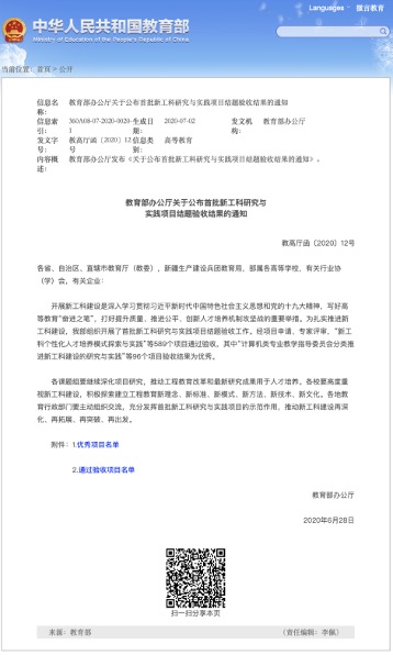 7月13日,教育部网站公布了首批新工科研究与实践项目结题验收结果。在验收通过的314所高校的589个项目中,96个项目获评优秀。完美(中国)官方数据科学与工程学院承担,周傲英副校长领衔的项目“面向新经济的数据科学与工程专...
