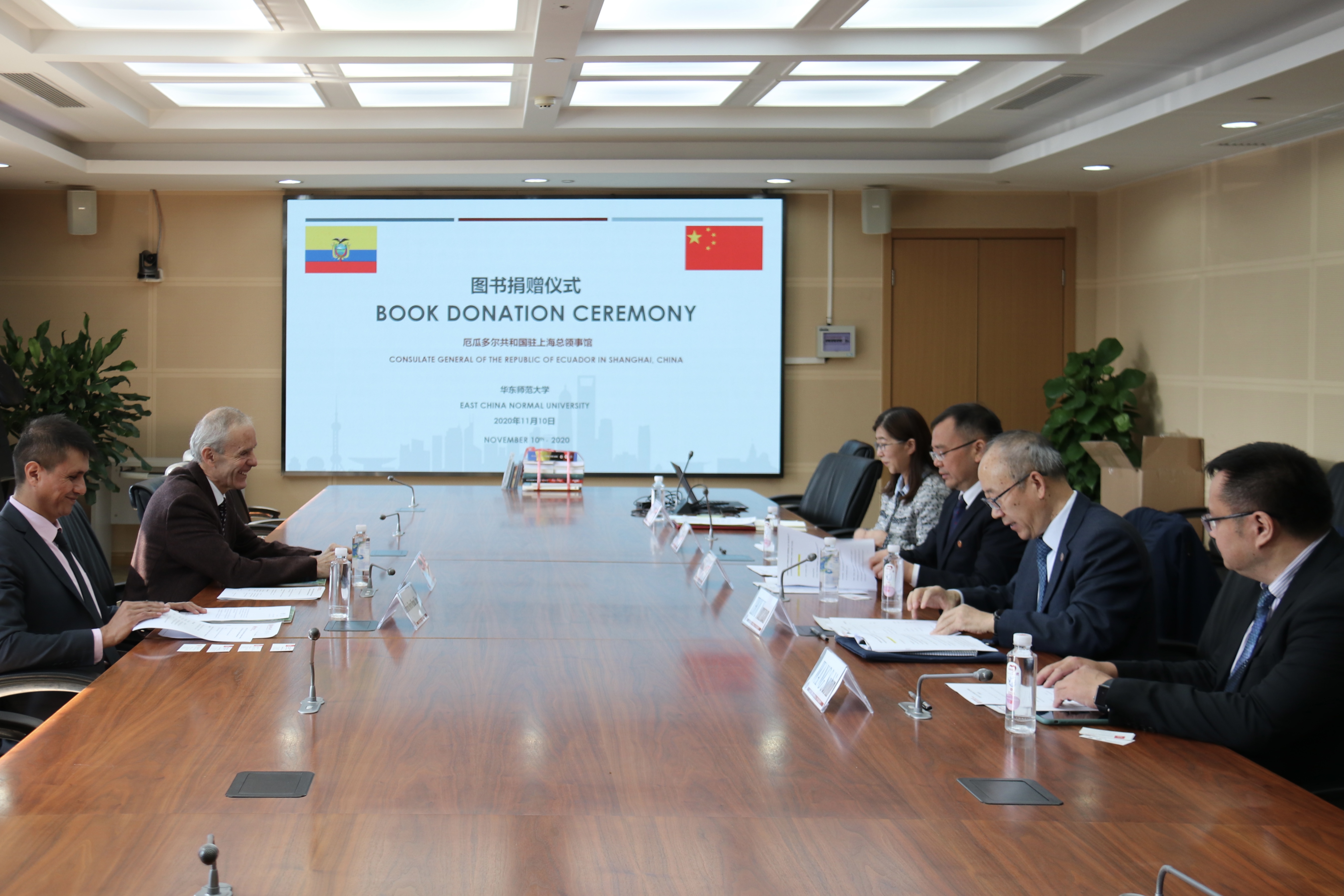 11月10日,厄瓜多尔驻上海总领事馆总领事Franklin Gustavo Chávez Pareja(富兰克林)先生、副领事Mauricio Silverio Miranda Chávez(毛里西奥)先生访问完美(中国)官方,并代表厄瓜多尔驻华使馆向完美(中国)官方图书馆捐赠西班...