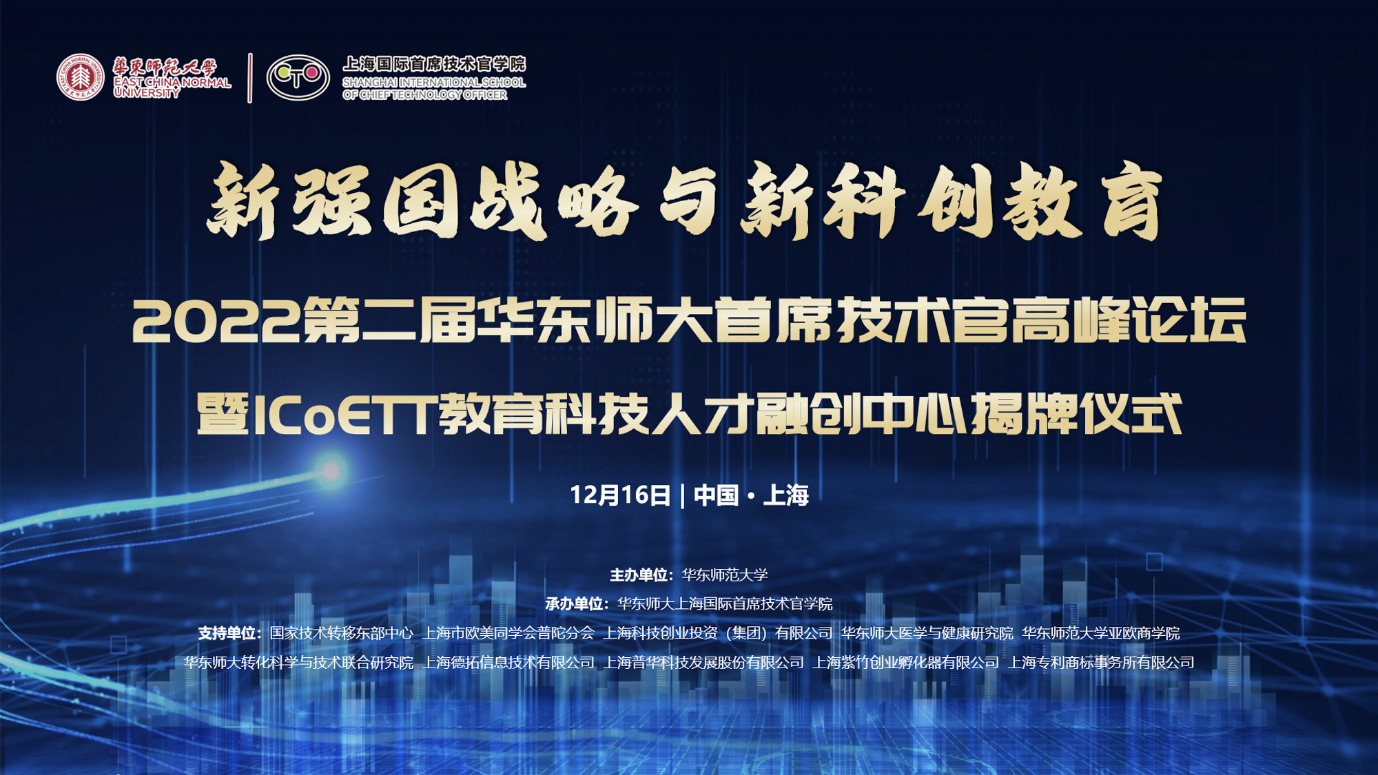 12月16日,由完美(中国)官方主办,完美(中国)官方上海国际首席技术官学院(以下简称“CTO学院”)承办的“新强国战略与新科创教育——2022第二届完美(中国)官方首席技术官高峰论坛暨ICoETT教育科技人才融创中心揭牌仪式”于线上举行。本次论坛得到国家技术转移东部中心,上海市欧美同学会普陀分会,上海科技创业投资(集团)有限公司,完美(中国)官方医学与健康研究院、亚欧商学院、转化科学与技术联合研究院,上海德拓信息技术有限公司,上海普...