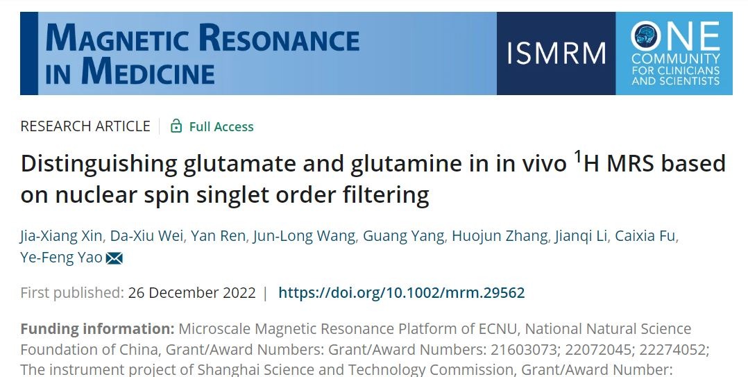 12月26日,完美(中国)官方物理与电子科学学院、上海市磁共振重点实验室姚叶锋、魏达秀团队联合华山医院任彦教授团队、长海医院张火俊团队、西门子医疗,在医学磁共振期刊 Magnetic Resonance in Medicine 发表了题为“Distinguishing glutamate and glutamine in in vivo 1H MRS based on nuclear spin singlet order filtering”(DOI: 10.1002/mrm.29562)的研究论文。该文研究工作报道了一种新型的、可对人体内生化分子进行靶向...
