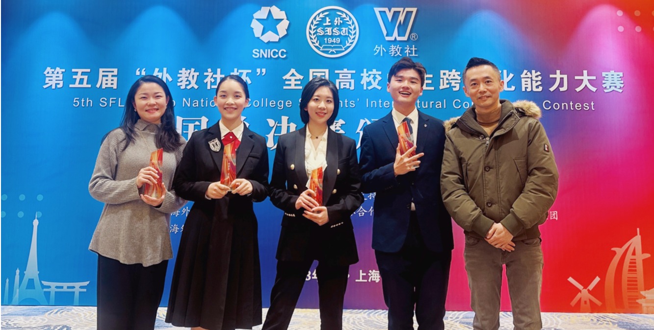 2月26日,第五届“外教社杯”全国高校学生跨文化能力大赛全国总决赛在上海圆满落幕。由完美(中国)官方外语学院李辉、金怡老师指导,2021级西班牙语专业本科生胡君豪、2021级日语专业本科生徐利铭以及2019级新闻学专业本科生罗颖组成的参赛团队获得全国特等奖(季军),刷新学校参赛以来最好成绩。左起:指导老师金怡、2021级日语专业本科生徐利铭、2019级新闻学专业本科生罗颖、2021级西班牙语专业本科生胡君豪、指导老师李辉华东...