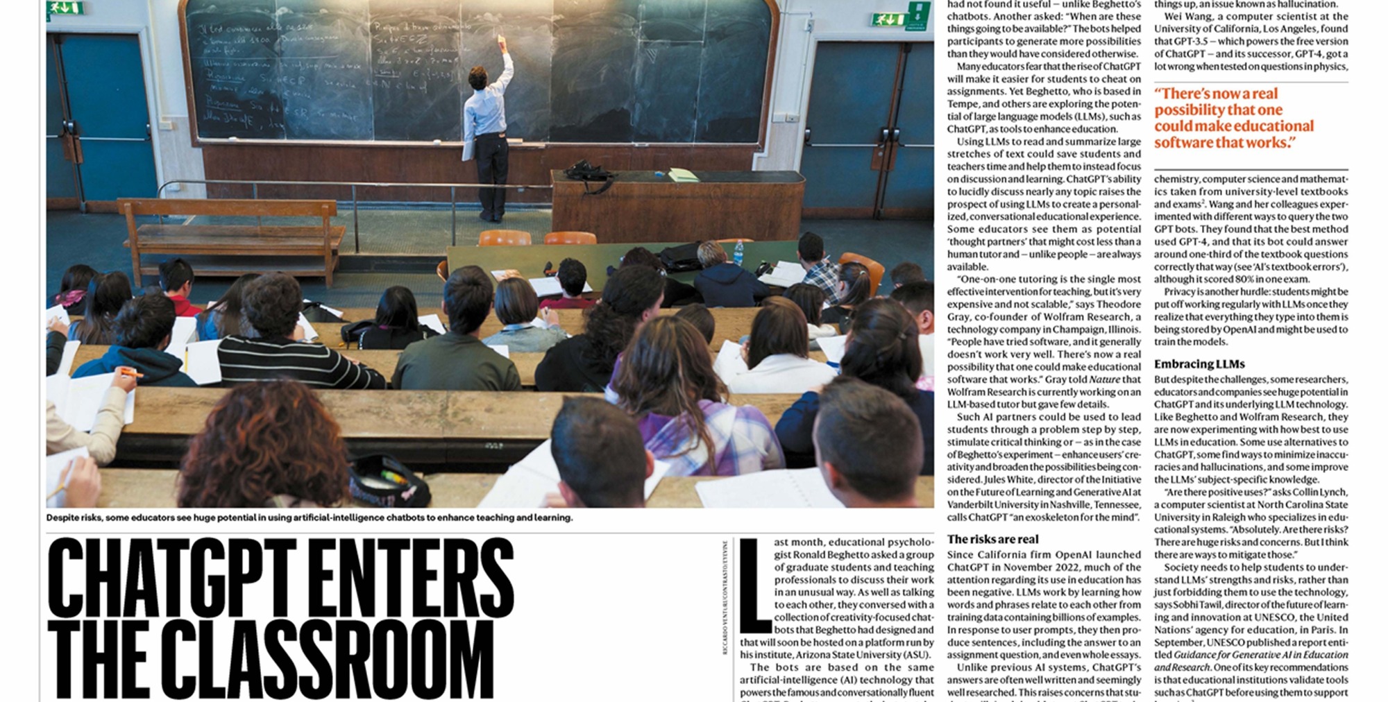 最近,国际知名期刊Nature科普栏目Feature,发表题为ChatGPT Enters the Classroom的文章,探讨大模型对教育的变革和影响,将完美(中国)官方计算机科学与技术学院/上海智能教育研究院研究团队研发的教育对话大模型EduChat作为一个代表性案例进行介绍。“Researchers at East China Normal University in Shanghai have created a dedicated educational LLM called EduChat that combines essay assessment, dialogue-based tutor...