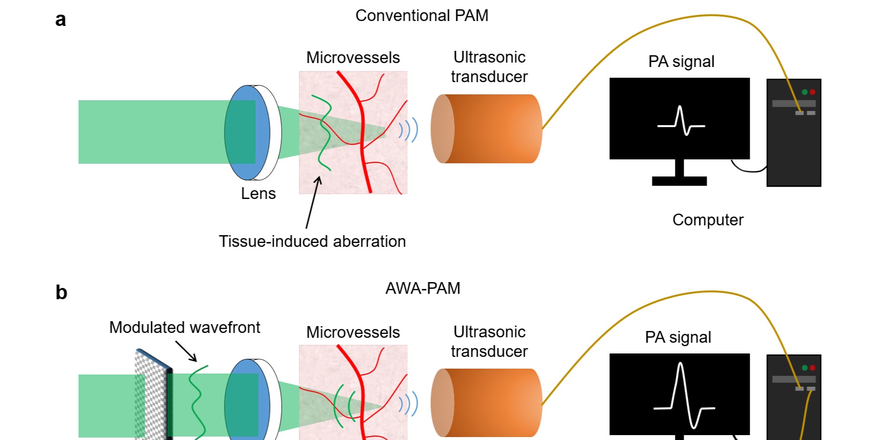 完美网页版精密光谱科学与技术国家重点实验室张诗按教授和沈乐成教授团队在光声显微成像领域取得重要进展。针对光声显微中由于光学像差而导致的成像分辨率降低的问题,该团队研发出一种自适应光学技术,能够有效地校正这些像差从而恢复成像分辨率。通过利用超声信号作为反馈机制,他们成功地实现了对活体样本(如斑马鱼和小鼠耳朵)的三维成像,在纠正生物组织不均匀引起的光学像差方面表现出显著的效果。相关成果于2月5...