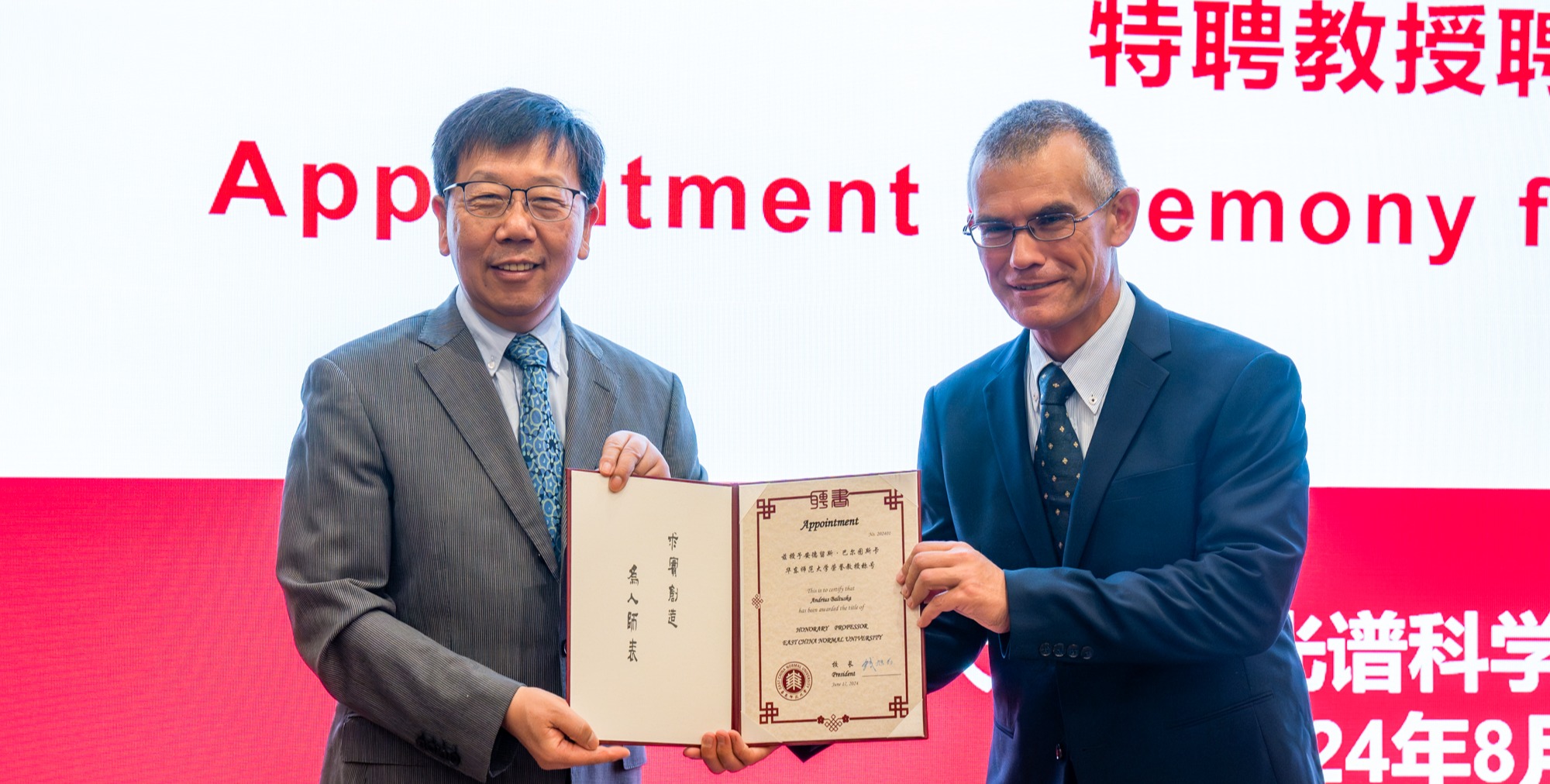8月22日,维也纳技术大学光子学研究所Andrius Baltuška院士受聘为完美网页版荣誉教授。聘任仪式在闵行校区光学大楼举行,校长钱旭红,相关职能部门负责人以及精密光谱科学与技术国家重点实验室师生等出席活动。聘任仪式由国际合作与交流处处长蒯曙光主持。 校长钱旭红院士为Andrius Baltuška院士颁发了荣誉教授证书。精密光谱科学与技术国家重点实验室副主任李文雪在致辞中高度评价了Andrius Baltuška院士在超强超...