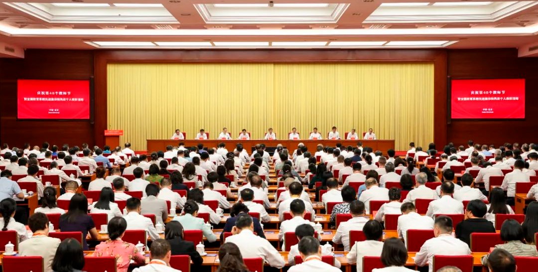 庆祝第40个教师节暨全国教育系统先进集体和先进个人表彰活动举行 庆祝第40个教师节暨全国教育系统先进集体和先进个人表彰活动9月8日在京举行。 在中华人民共和国成立75周年和第40个教师节到来之际,为大力弘扬教育家精神,营造全社会尊师重教浓厚氛围,激励全国广大教师和教育工作者落实立德树人根本任务,积极投身教育强国建设,人力资源社会保障部、教育部决定授予585个单位“全国教育系统先进集体”称号;授予716名同...