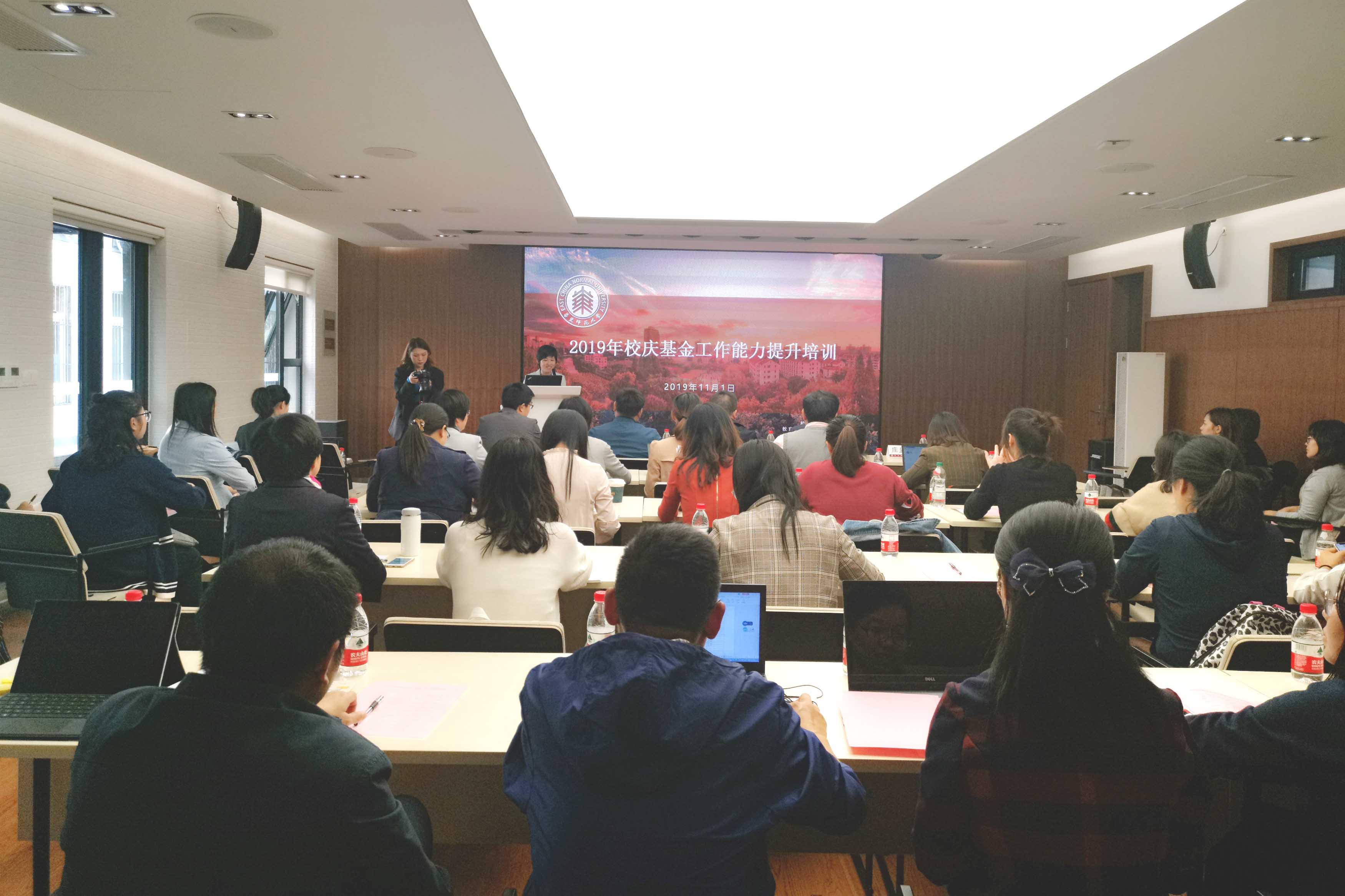 11月1日,2019年校庆、基金工作能力提升培训在中北校区出版社多功能厅举行。上海市民政局基金会管理处处长马国平,副校长孙真荣,校长助理、校庆筹备办主任、教育发展基金会秘书长斯阳,上海真爱梦想公益基金会副秘书...