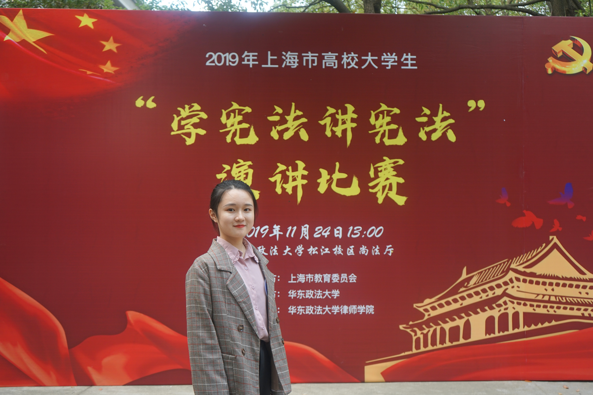 11月24日,由上海市教育委员会主办、华东政法大学承办、华东政法大学律师学院协办的2019年上海市高校大学生“学宪法讲宪法”演讲比赛在华东政法大学松江校区举行。经过激烈角逐,我校法学院2017级本科生汪羽舒表现抢...